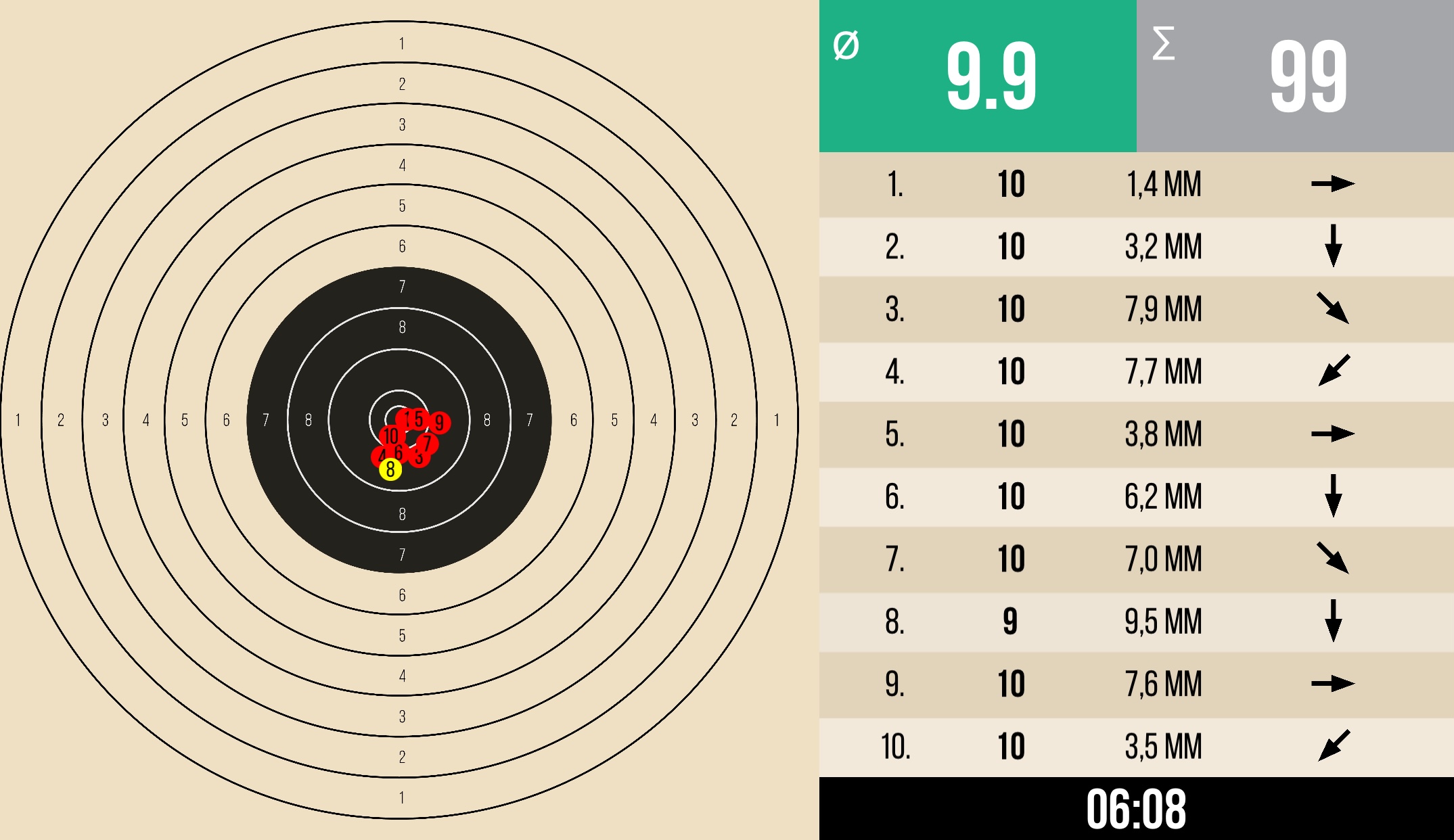Mich kostet mein Kopf, der das Umfeld/die eigenen Gedanken eben noch nicht ausblenden kann, stolze 30 Ringe… 375 Ringe schaffe ich locker im Trainingsschnitt und 340-350 im Wettkampf. Ja, ich bin jetzt ganz neu in den Wettkämpfen und ja das kommt mir der Zeit & Regelmäßigkeit. Aber dennoch frustriert mich das massiv. Und so manch einem der mir sehr nett geschrieben hat, geht es genauso… Naja, kommt hoffentlich bald.
