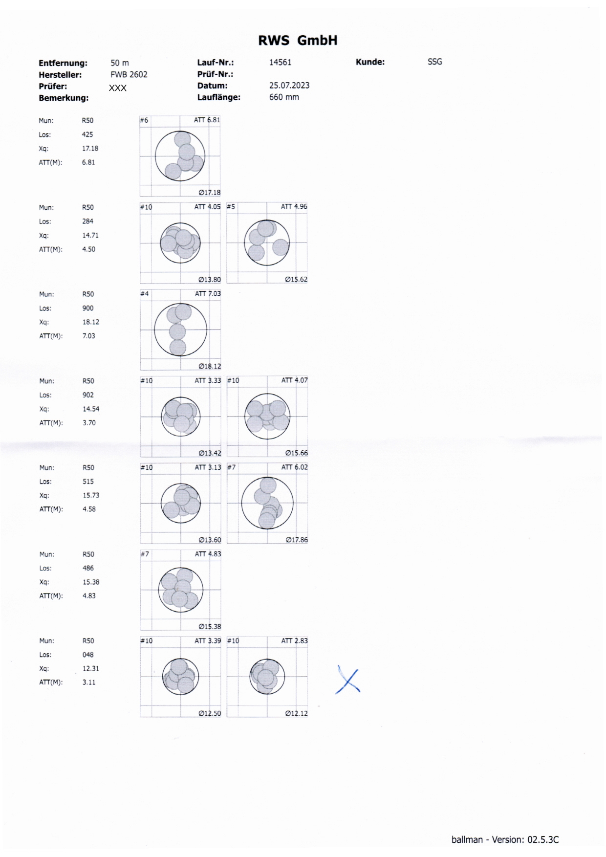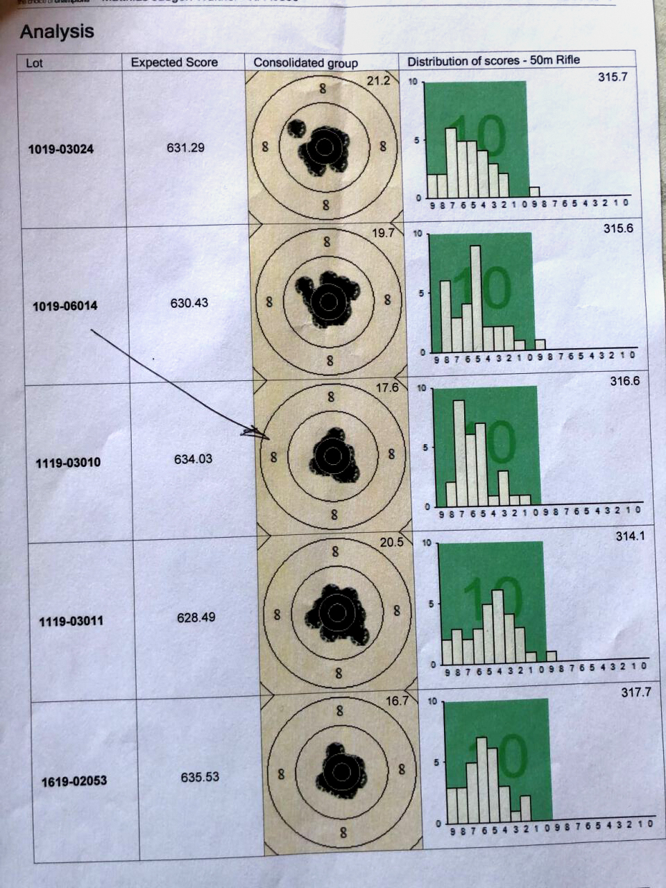 Ich schiesse KK- Auflage mit eingeschossener R 50! Wenn man die 10 treffen will, vielleicht 30 x, auf 50m, da kommt man mit einer preisweten Munition im Wettkampf nicht weit. Im Training reicht mir eine Rifle Match schon. Aber im Wettkampf, muß die Munition perfekt sein. Hier im Anhang, ein Test vom Vorbesitzer meines FWB 2602, Eley (keine Ahnung was) und von mir, nach dem Kauf bei RWS, R 50, 2023. Da kann man schon noch was rausholen. Das hat zwar jetzt nichts mit den Chinesen zu tun, aber man sieht beim Test, das man aus so einem alten Gewehrlauf, durch Testen, noch allerhand rausholen kann. Natürlich bringt nicht jeder alte Gewehrlauf 12mm (umschlossen gemessen) und man muß auch etwas Glück haben, eine passende Munition zu finden.
