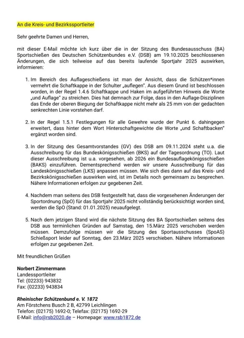 Das Anschreiben ist ja nur vom Rheinischen Schützenbund