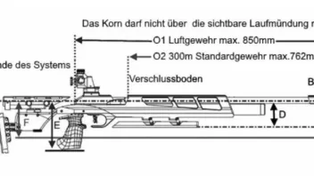 eine mögliche Schrägstellung des Schaftkappenträgers oder der Schaftkappengrundplatte, ich würde hier lieber von Schrägstellung und nicht von Schränkung sprechen, spielt für die Regel 1.4.6 keine Rolle, da sich die 25 mm auf eine gedachte Linie, welche senkrecht zur Laufachse verläuft, bezieht. Solange diese 25 mm eingehalten werden, ist die Schrägstellung egal. Dass eine mögliche Schrägstellung aber einen Einfluss auf diese 25 mm hat, dürfe ja wohl klar sein.