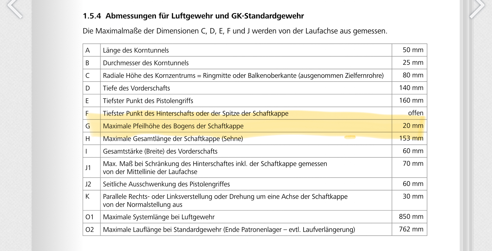 Ich glaube Gerd hat es noch nicht verstanden. Die 25 mm sind für LG total egal , es gilt aktuell nur die 20 mm Bogensehne und eine „Verschrägung“ nach unten, die derzeit nur über den 9.7.2 limitiert ist.