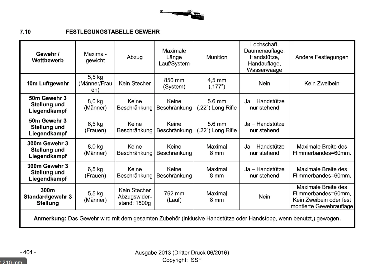 • Festlegungstabelle Gewehr ISSF konnte ich auch noch nicht finden
