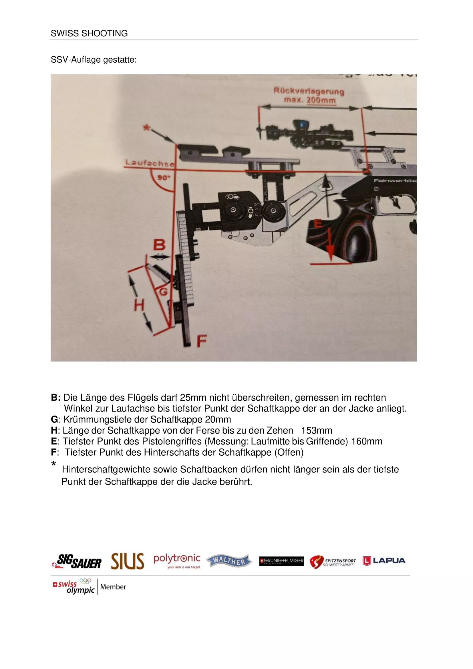 • Auch in der Schweiz gibt es zusätzlich zu den ISSF-Regeln und den technischen Regeln Gewehr für Auflageschiessen noch Merkblätter, die drei Wochen vor den Schweizermeisterschaften ohne Vorinformation als gültig und unumstösslich erklärt wurden.