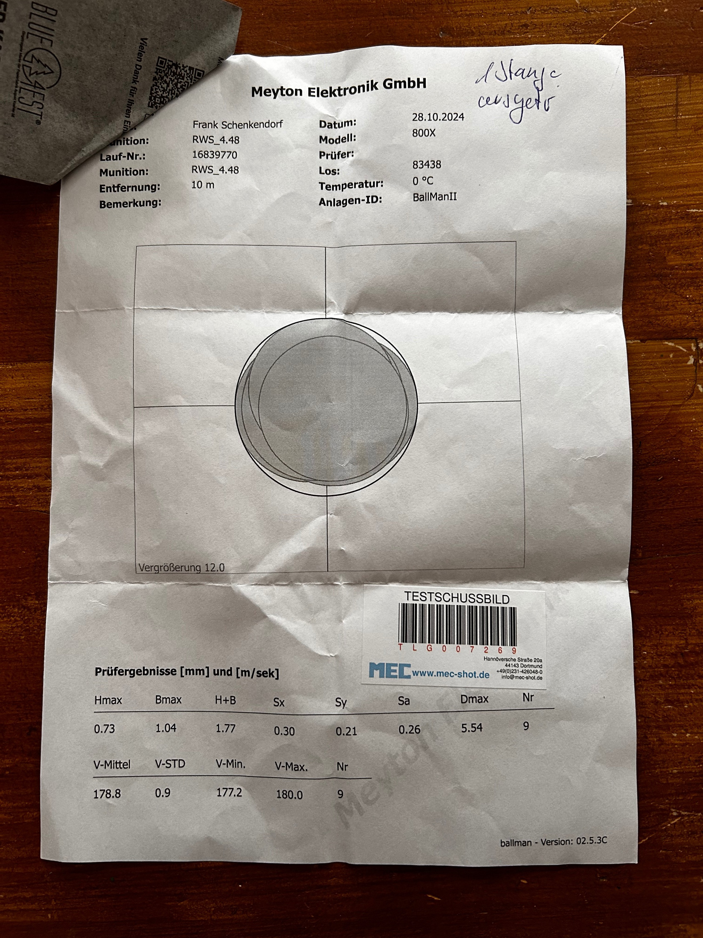 Und dann mal mit der gleichen Losnummer eine 200bar Kartusche dran.