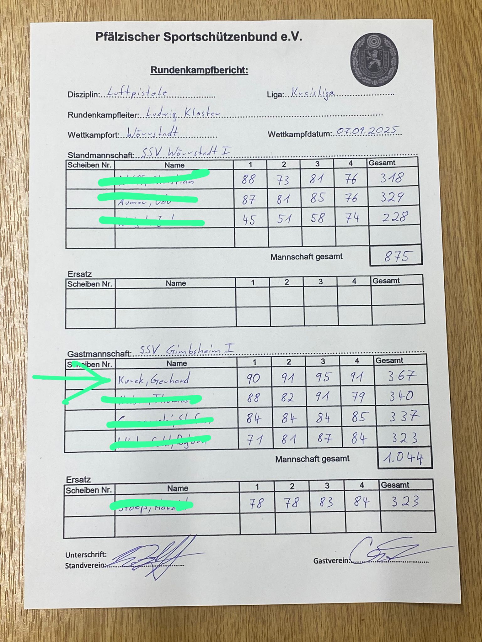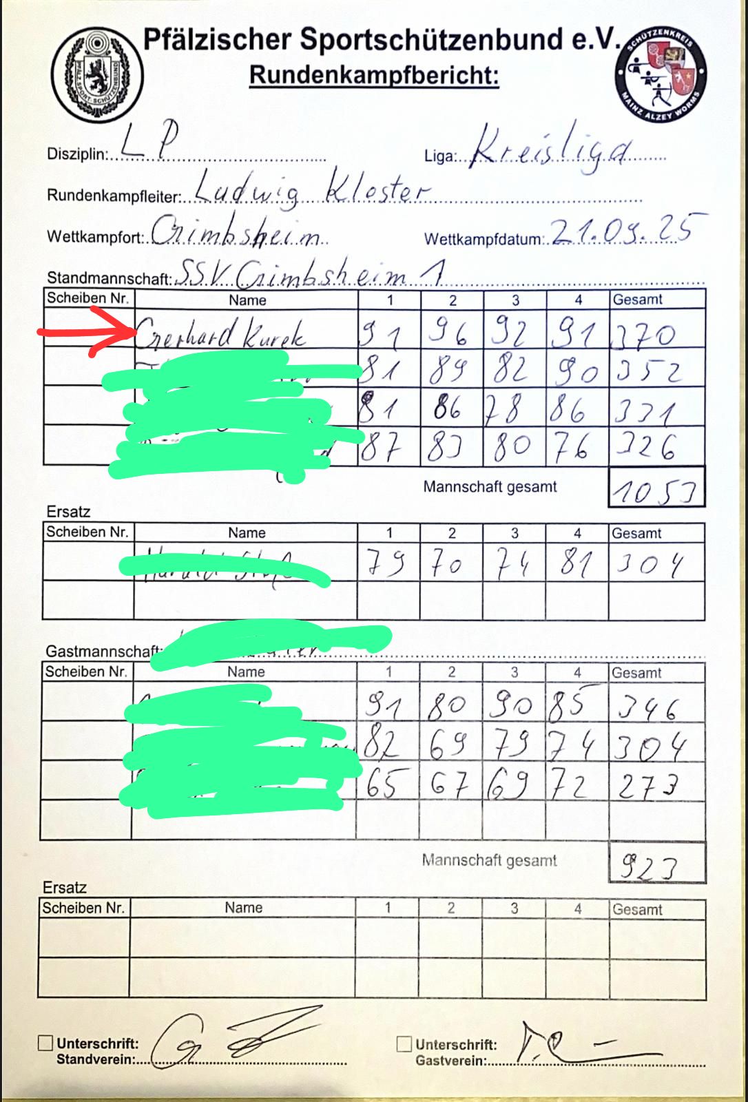 Ein Ergebnis vom Schießtag 07.09.2025 für Juli nachtragen lassen. 8o