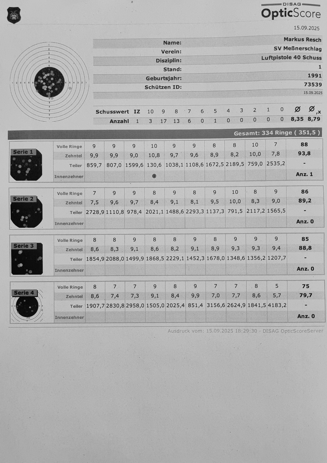 hier mein Ergebnis für September Luftpistole Auflage: