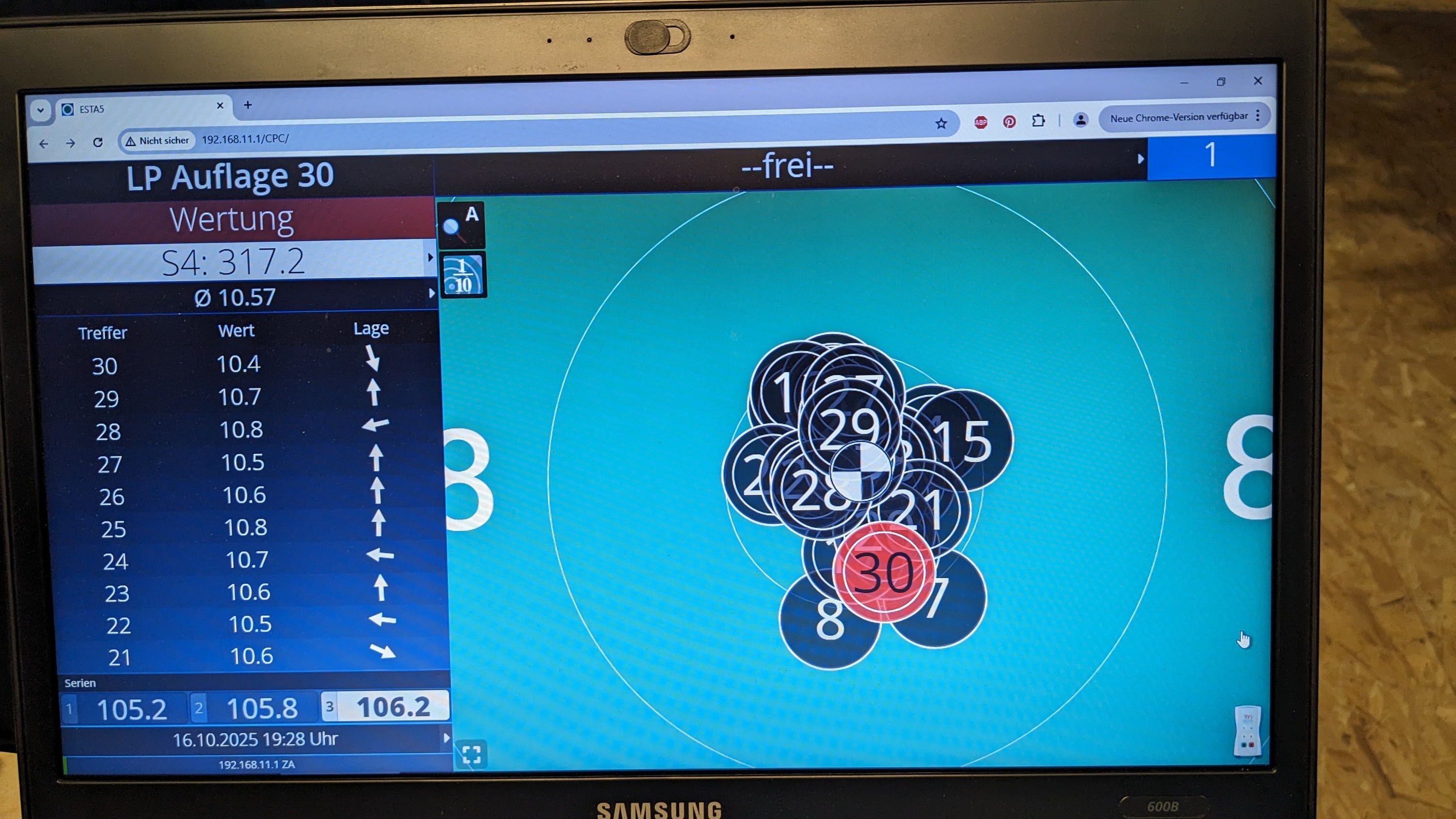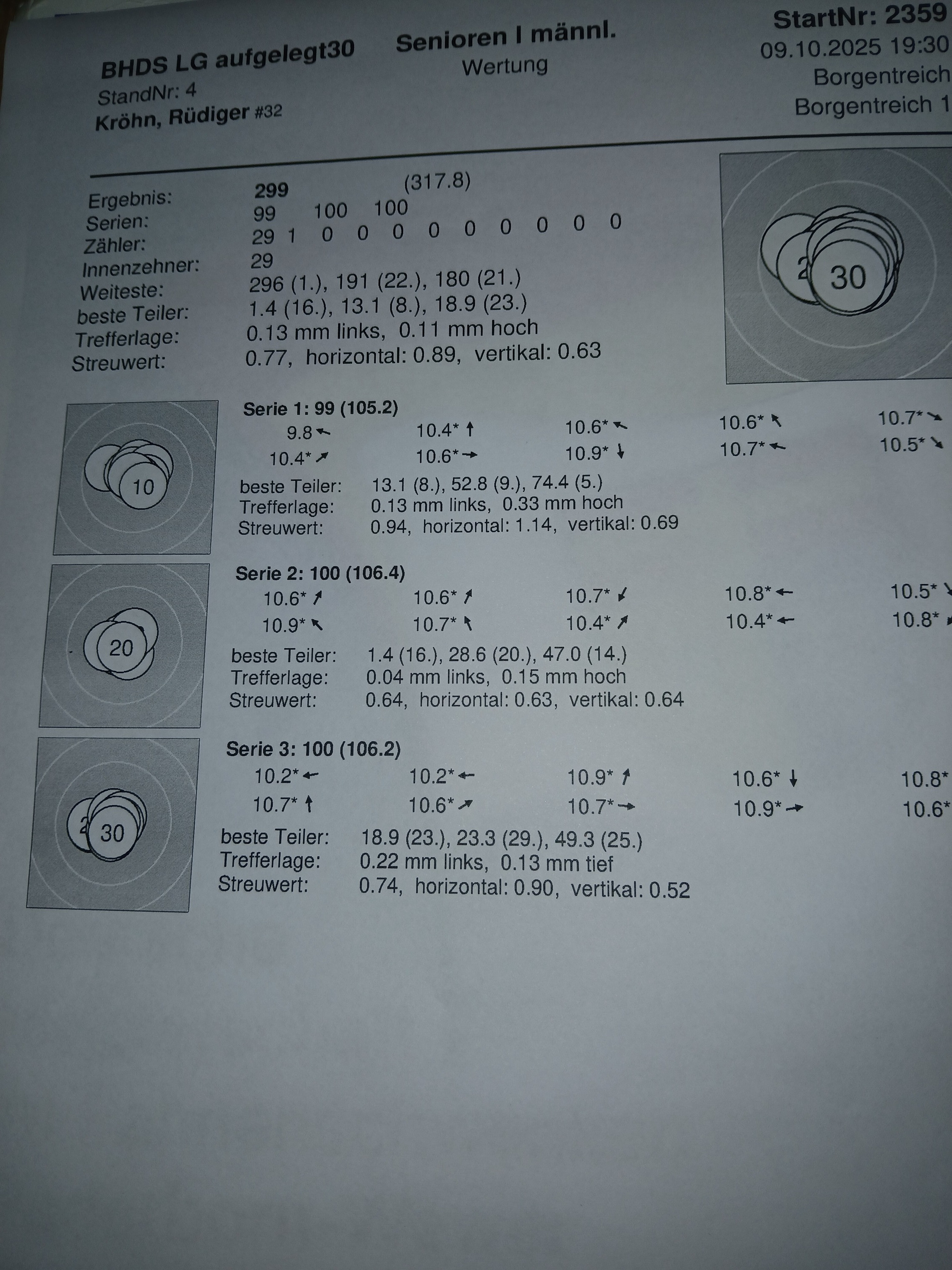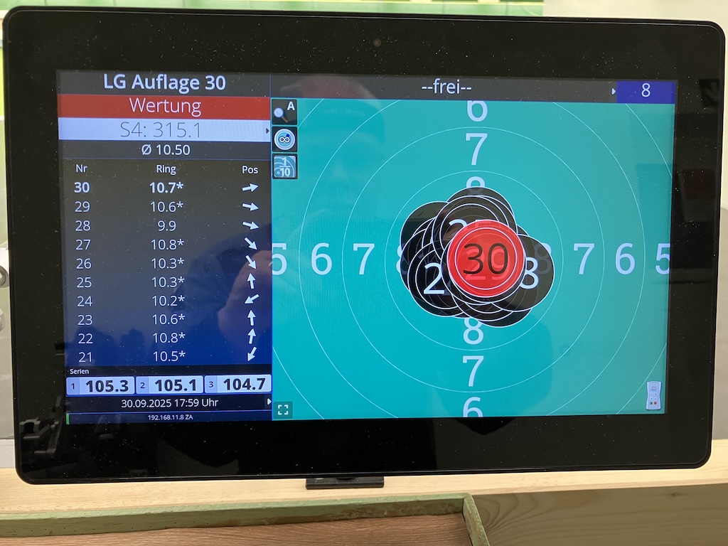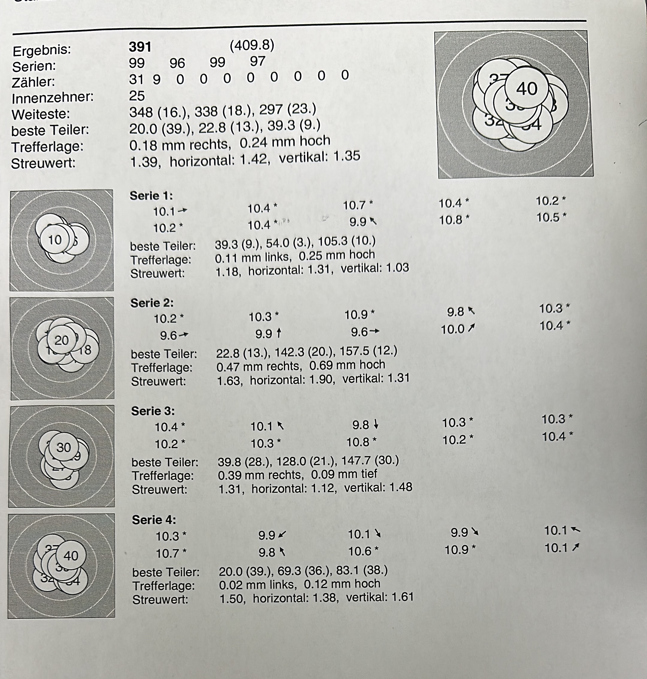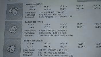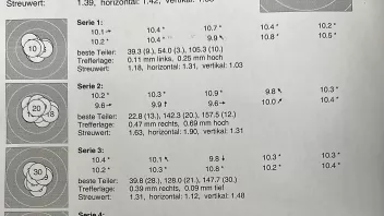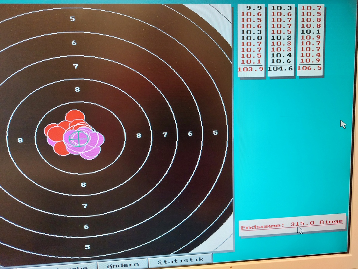 1.Serie 10,1 +10,3 # 2. Serie 10,4 +10,4 +10,4 # 3. Serie 3. Schuss 10,4 und der letzte in die 10.5 hoch, obwohl noch 15 Minuten auf der Uhr waren.