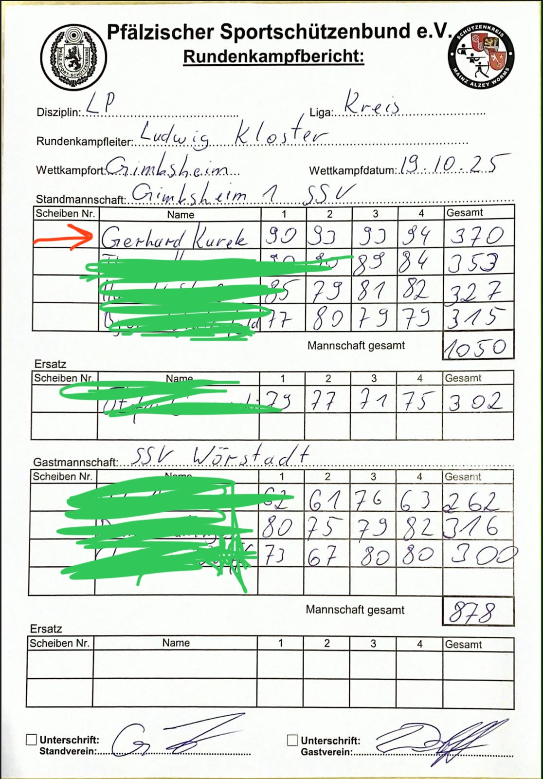 hier mein Ergebnis Luftpistole frei für Oktober.