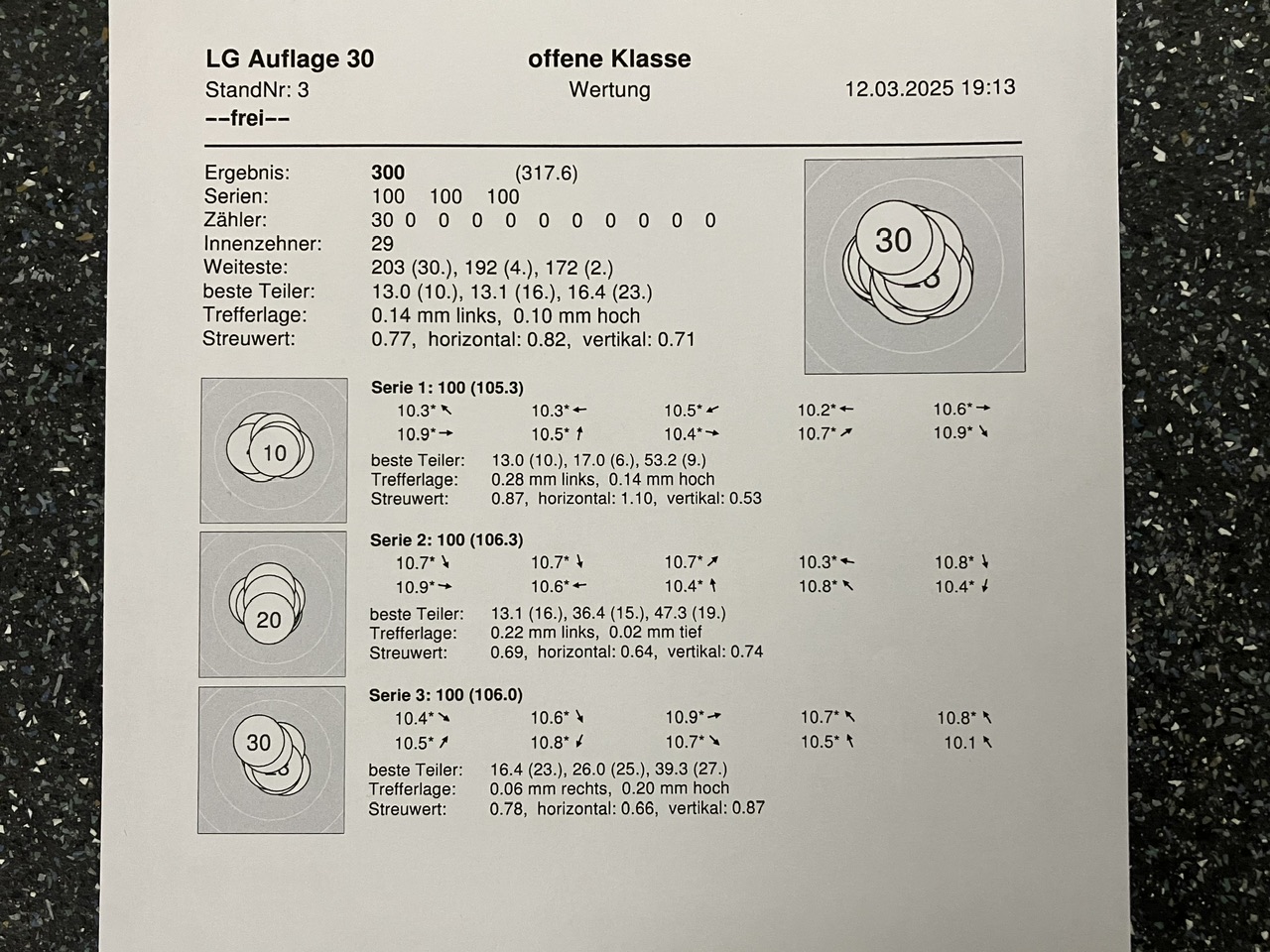 Luftpistole Auflage: 314,8 Ringe