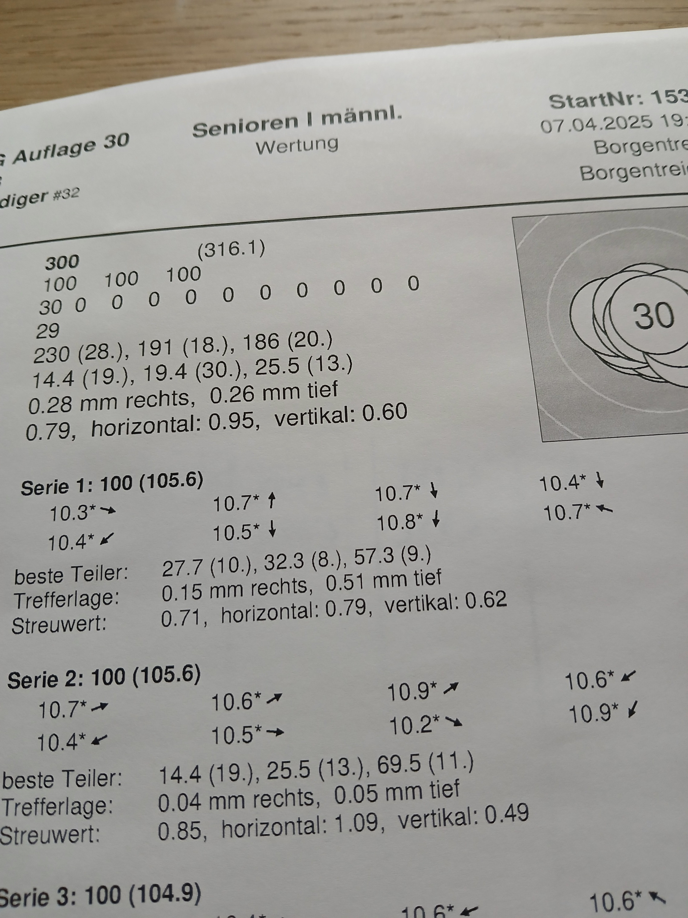 Ich darf ergänzen, dass ich erst seit September mit LG-A angefangen habe um unsere Mannschaft etwas zu unterstützen. Überraschenderweise bin ich nun (leider) Leistungsträger geworden. Und das, obwohl ich komplett in "zivil" schieße, also keine Schießschuhe, Schießhose oder Schießjacke anhaben...