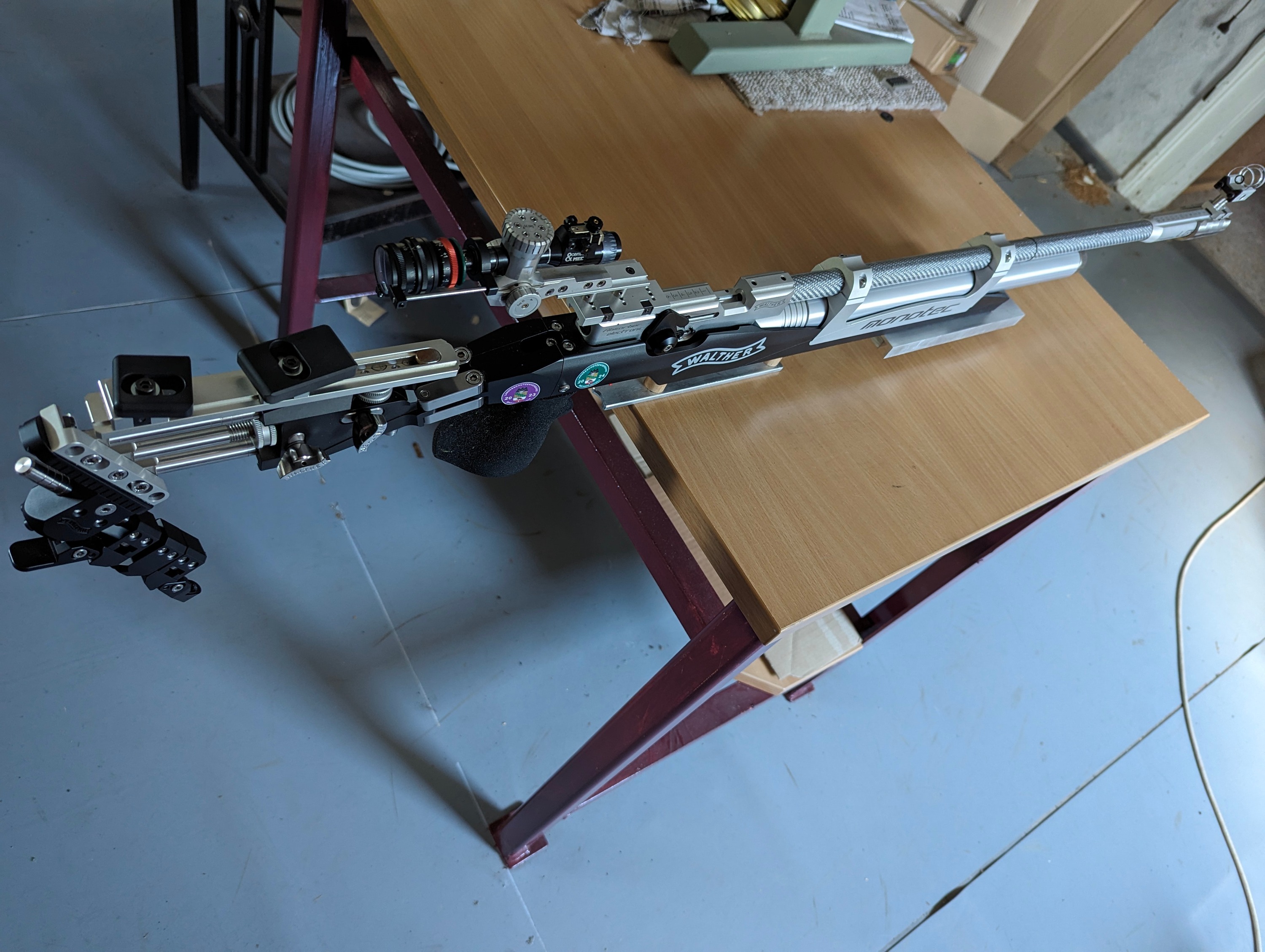 Unter dem Reserve LG Anschütz 8002 ist ein TEC HRO ground max 2.0, da liegt das Gewehr schön tief.