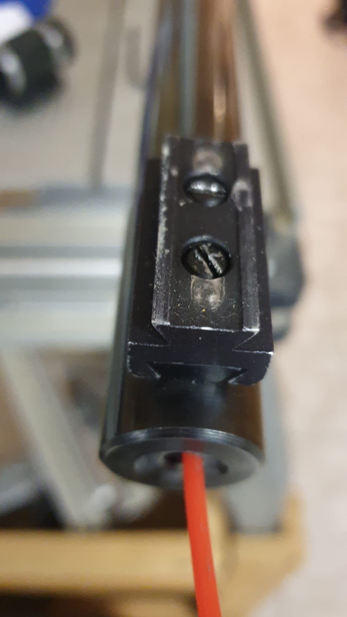 Ich habe ein Anschütz KK 54 Match System. Dieses System an einen aufgesetzten Prismenblock zum befestigen des Korntunneln. Dieser Prismenblock ist auch laut Anschütz mit dem Lauf fest verlötet und kann nicht ohne weiteres abgenommen werden.