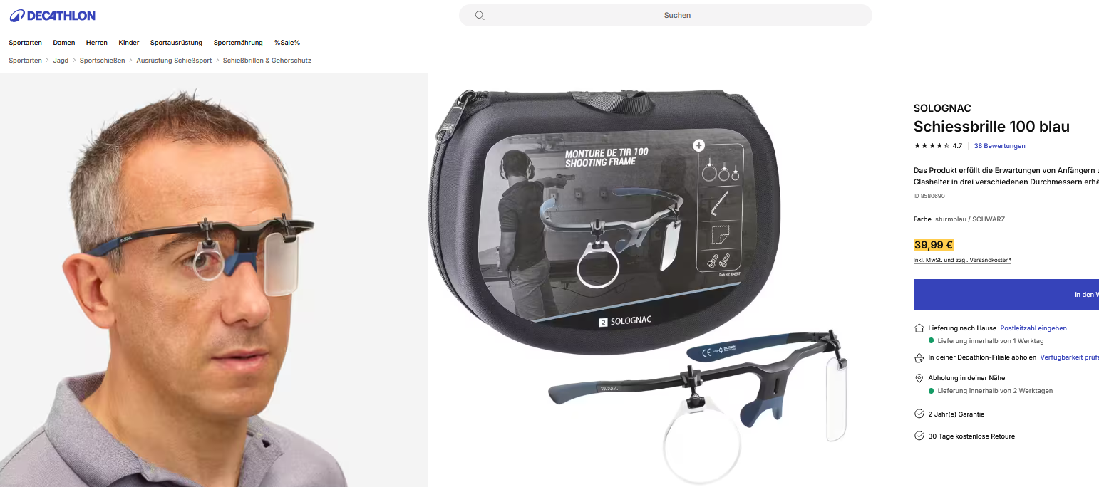 Ich benutze die Decathlon Brille zur Abdeckung des nichtzielenden Auges. Ist angenehm zu tragen und kostengünstig.