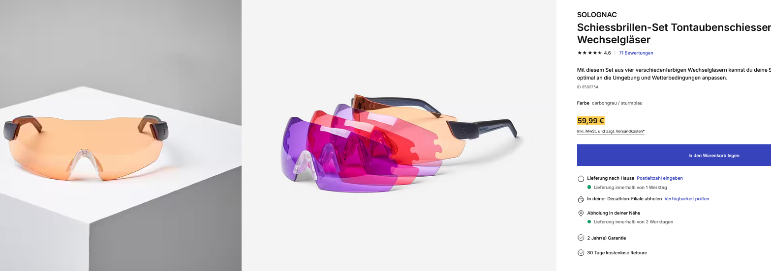 Die Schießbrille für Pistole/Gewehr kam in einem stabilen Case, wir haben die mittlere Glasfassung montiert. Es lässt sich alles einstellen... ist zwar alles Kunststoff aber das Einstellen funktioniert am Kopf gut. Morgen gehts zum Optiker dann wird die Brille bald einsatzfähig sein.