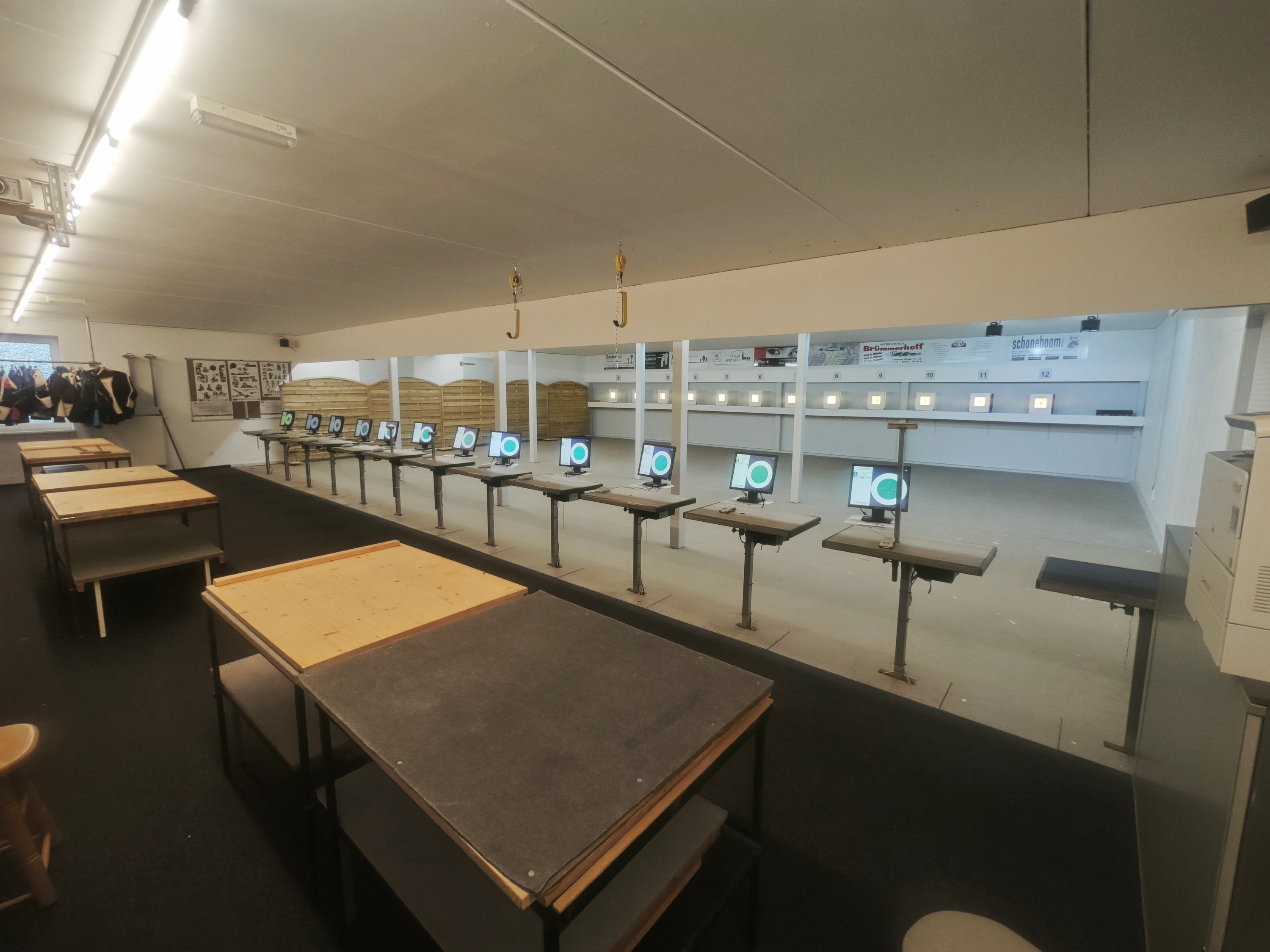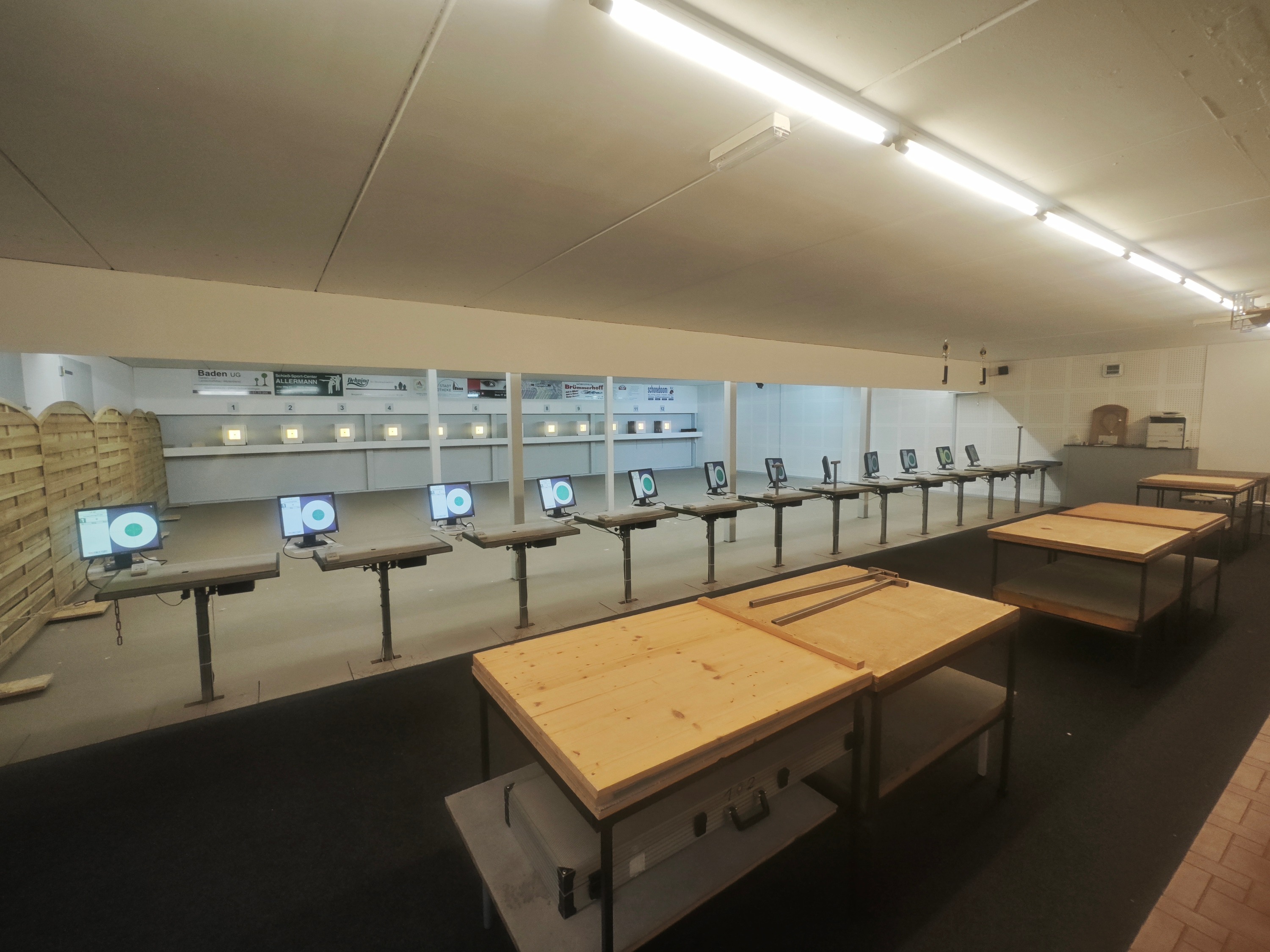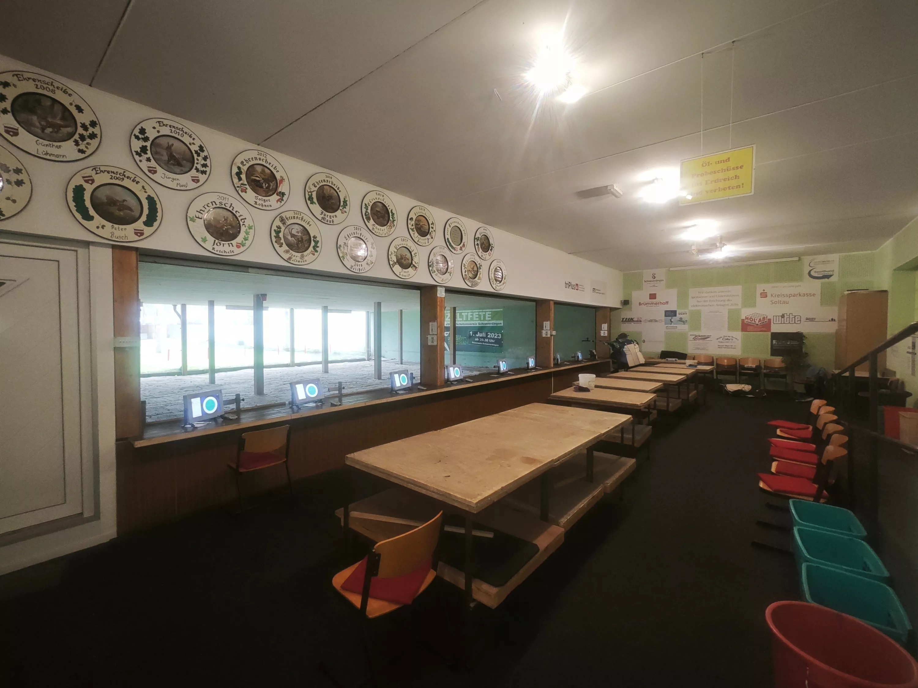 Um mal für die anderen einen Überblick zu schaffen habe ich von unserem Schießstand ein paar Bilder gemacht, uns mangelt es nicht an Platz, passen viele Mannschaften rein ohne das man über Taschen stolpern muss.