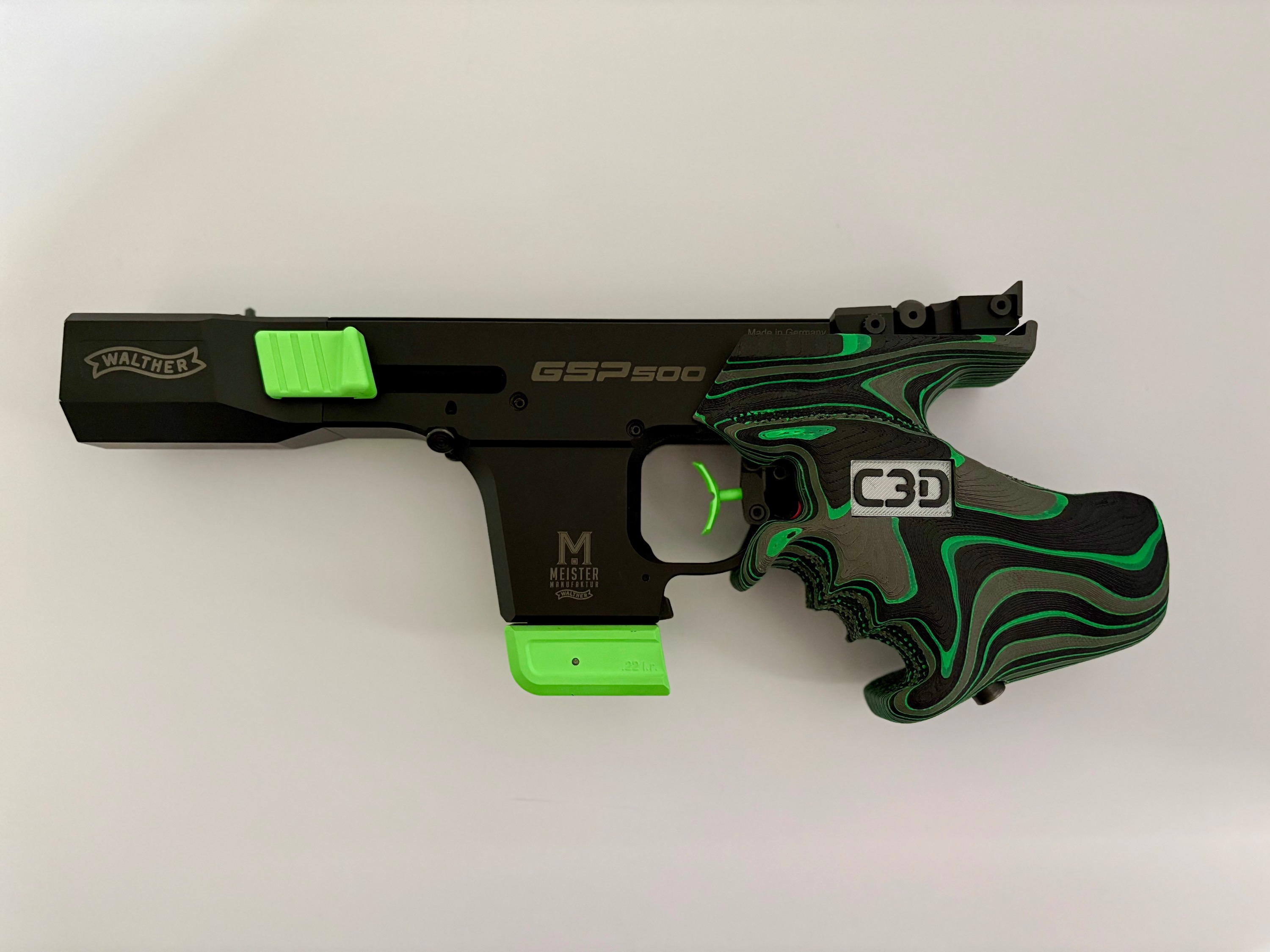 • Beim Deutschen Schützenbund in den News gesehen und auch auf Wettkämpfen bei einigen Kaderschützen (Florian Peter z.B) sind mir die 3D gedruckten Griffe von C3D aufgefallen. Neugierig wie ich bin (Ich teste gerne neue Produkte um mein eigenes Wissen auszubauen und als Trainer weitergeben zu können), habe ich die Jungs dort einmal kontaktiert um meinen gespachtelten und geschliffenen GSP500 Griff in schön zu erhalten.