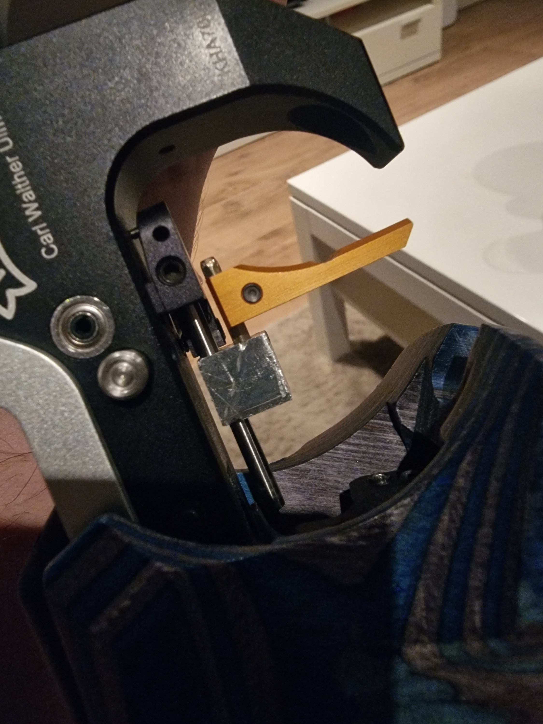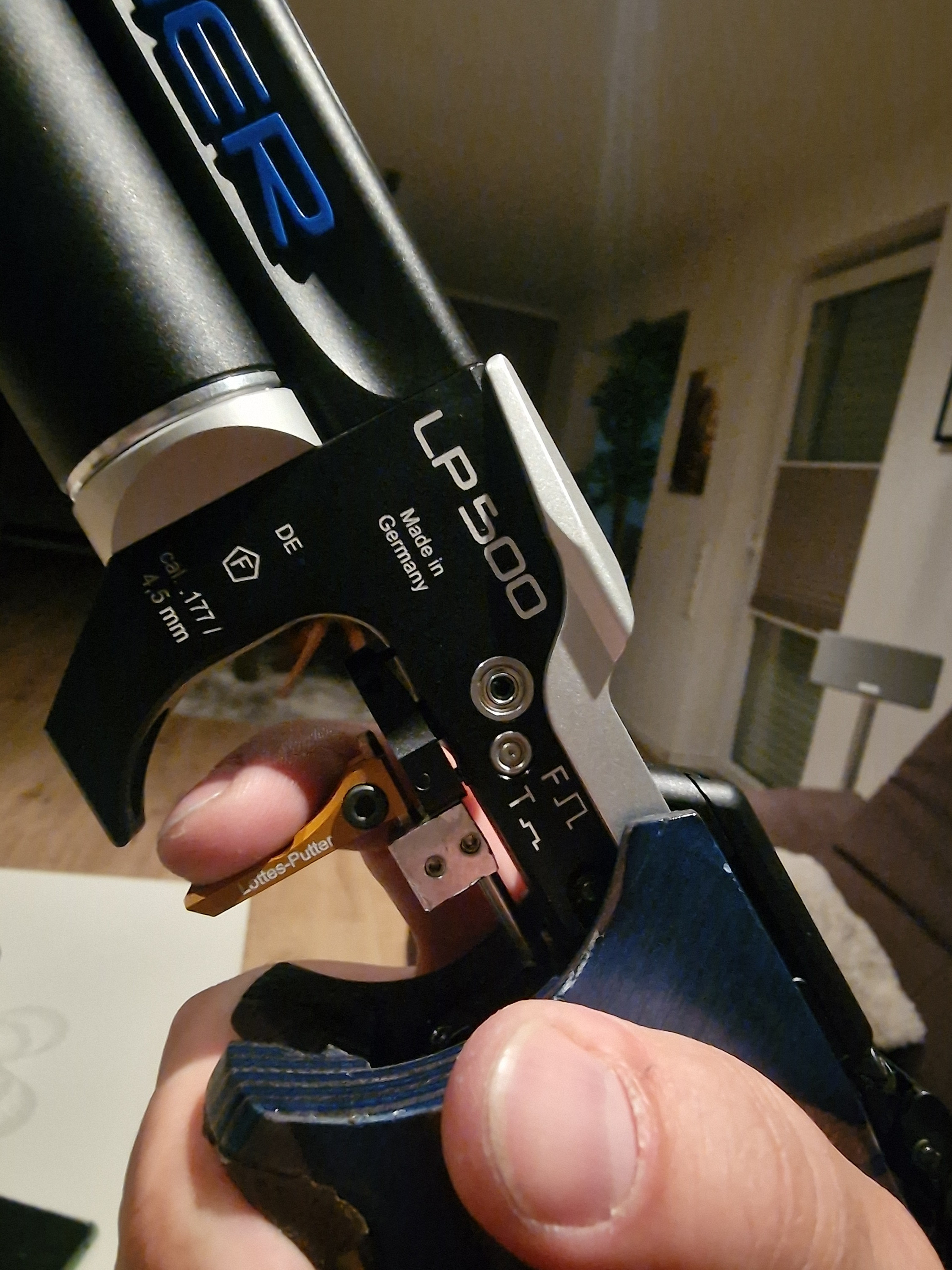 Ich schieße zur Zeit mit einer Walther LP500e Meister mit einem Abzugszüngel von Techhro, was sich super anfühlt. Aber leider bekomme ich das Druckpunktgewicht nicht unter 120-130g. Keine Chance. Die Druckpunktschraube ist maximal herausgedreht und das Vorzugsgewicht dann auf 530 Gesamtgewicht erhöht.