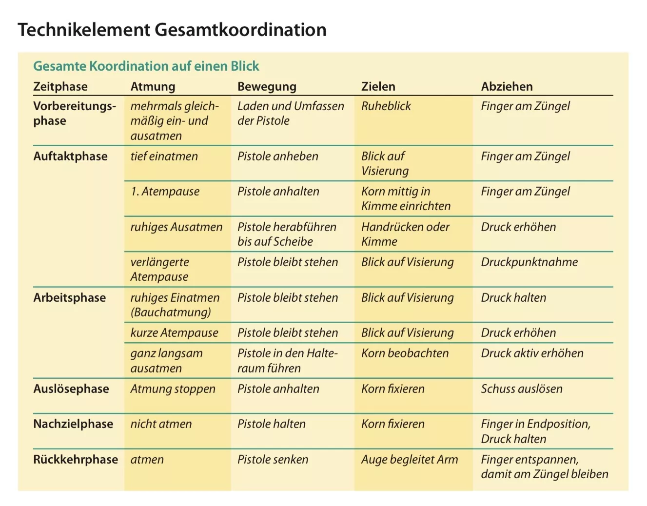Ihr solltet das in kleine Sequenzen unterteilen, beginnen mit Startphase bis zum erreichen des vermeintlichen Halteraumes. So das ihr die senkende Bewegung ausführt und genau sauber in der Zahlenreihe herunter kommt zuerst mal ohne alles weitere. Also kein Druckpunkt keine große Aufmerksamkeit auf Atmung.