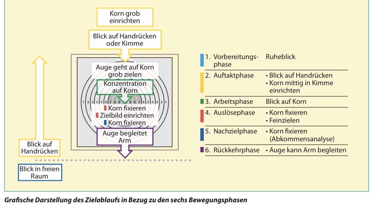Ist eine vermessene Aussage so ohne Face to Face Arbeit, aber ich denke das der Blick auf der Scheibe ruht oder sogar umher irrt also raus rein und kaum eine Kontrolle von Kimme und Korn erfolgt. Ein richtig strukturier souveräner zusammen wirkender Ablauf ist auch nicht zu sehen.