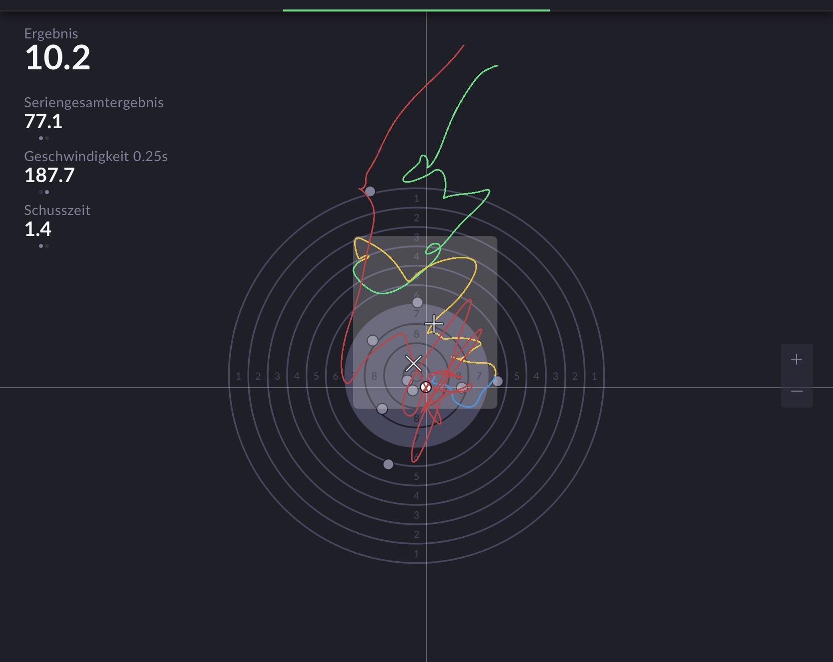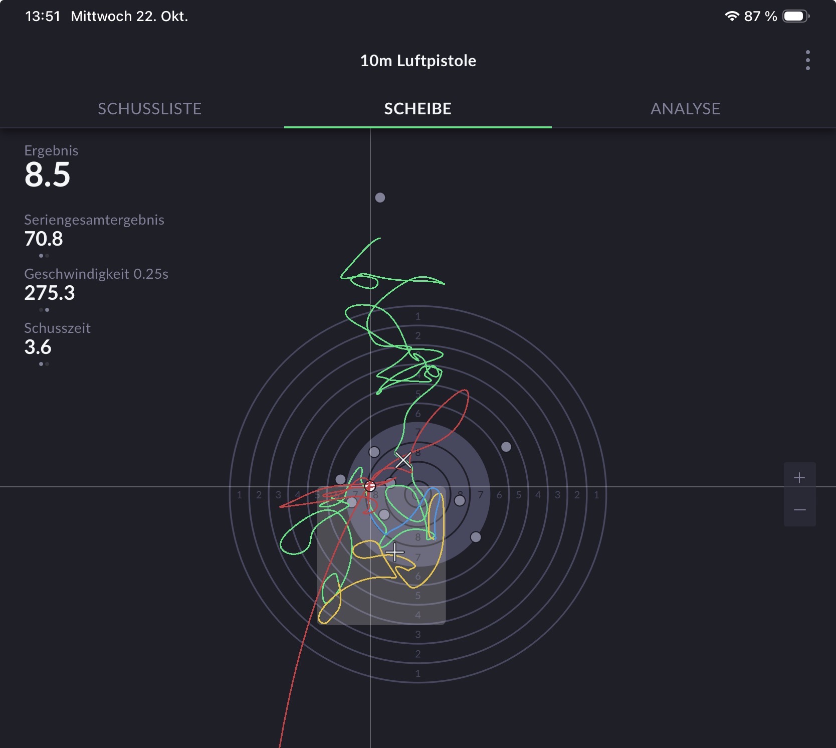 Dann in Gelb rumgezittert und nach rechts gewandert, dann abgedrückt und einmal quer über den Spiegel gerissen,zufällig auf 9.8 gelandet.
