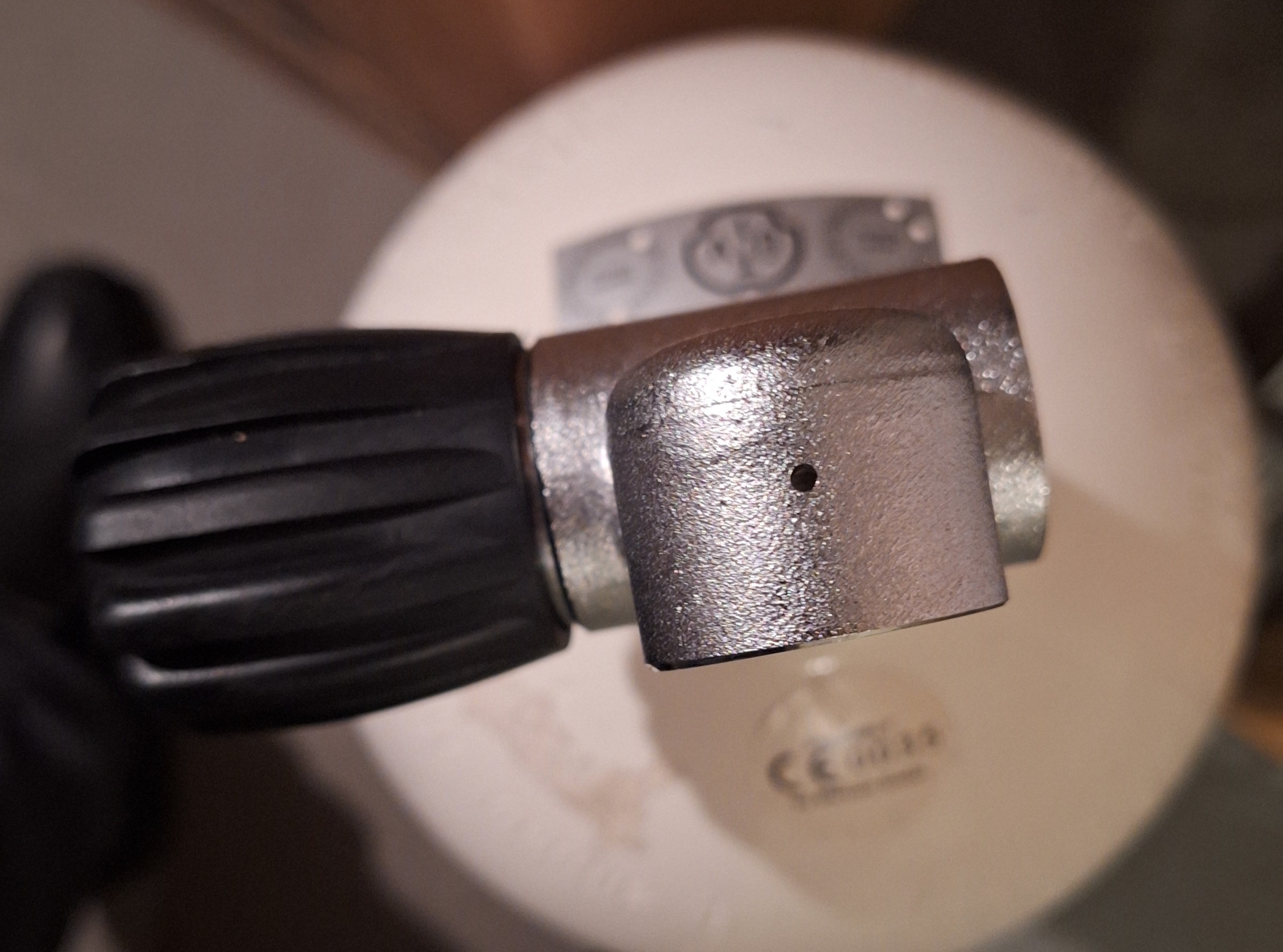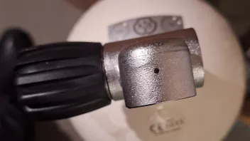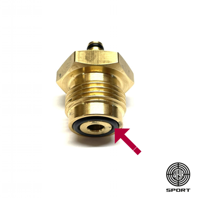 Oder du versuchst gerade ein 200bar Adapter in eine 300bar Flasche zu drehen. Bei dem 200bar Adapter ist das Gewinde zu kurz und legt dieses Loch frei .