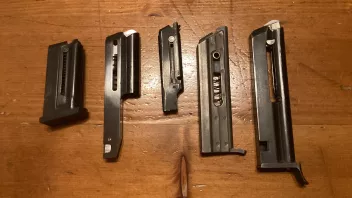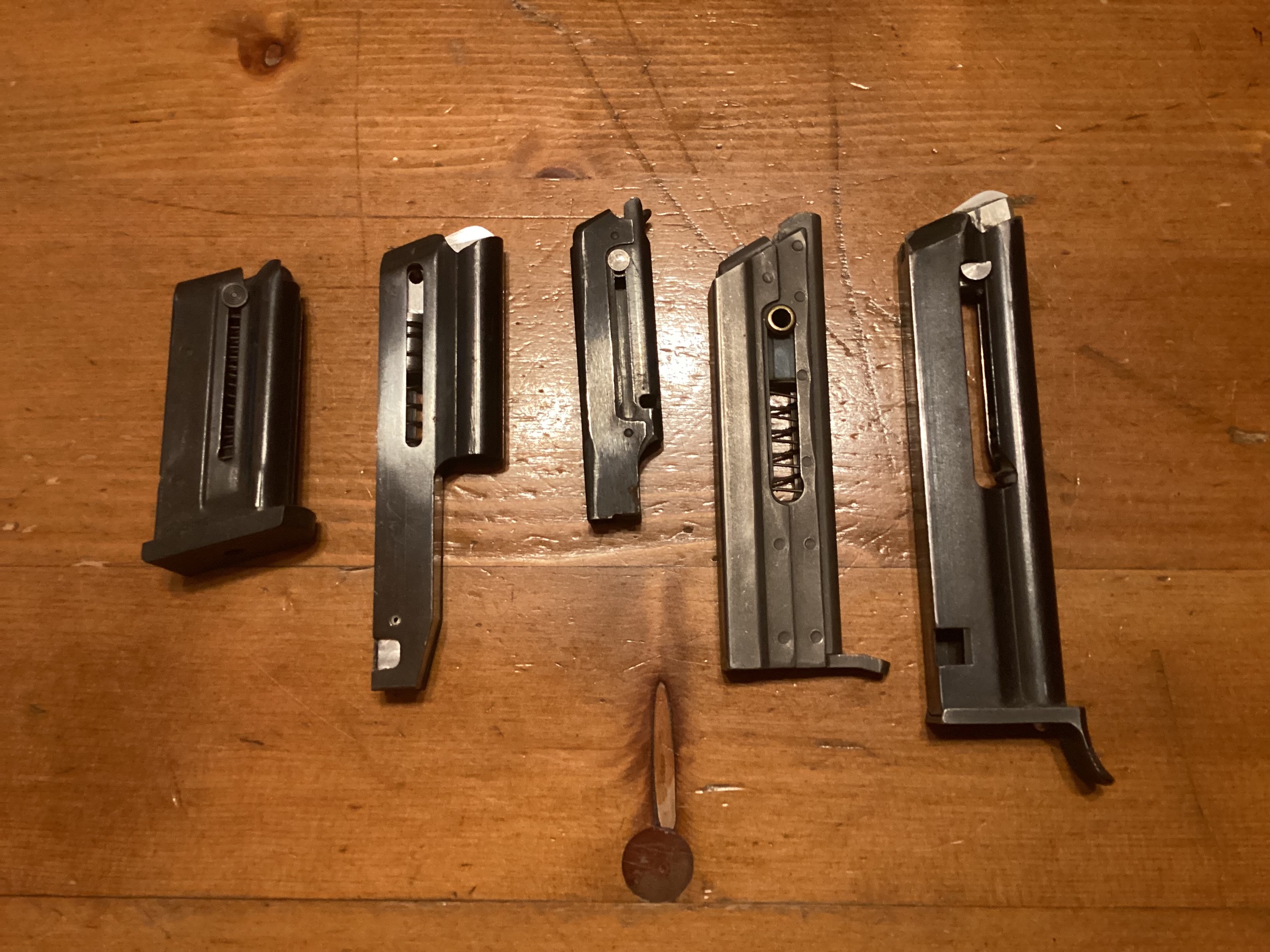 Die Magazine von Pistolen (22) die diese im Griff haben fassen in der Regel 8-10 Patronen, nur die sind bei Sportpistolen blockiert auf oft 5 Patronen.
