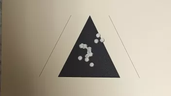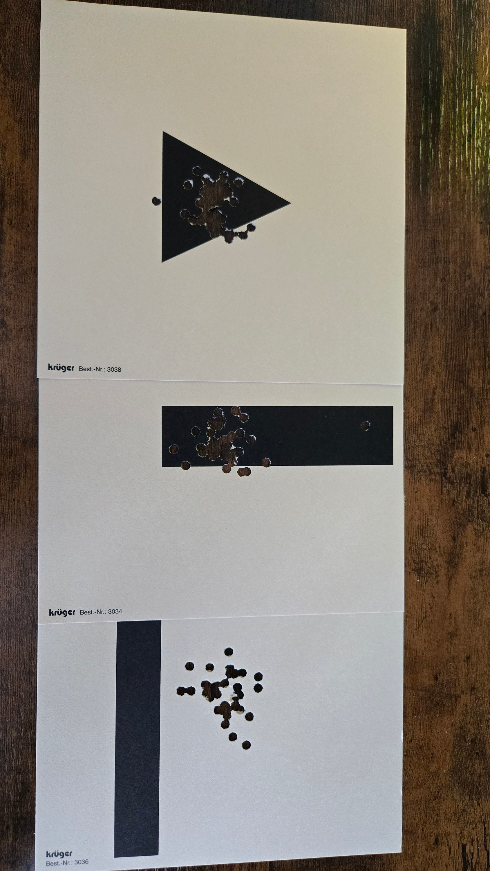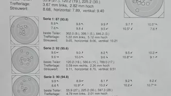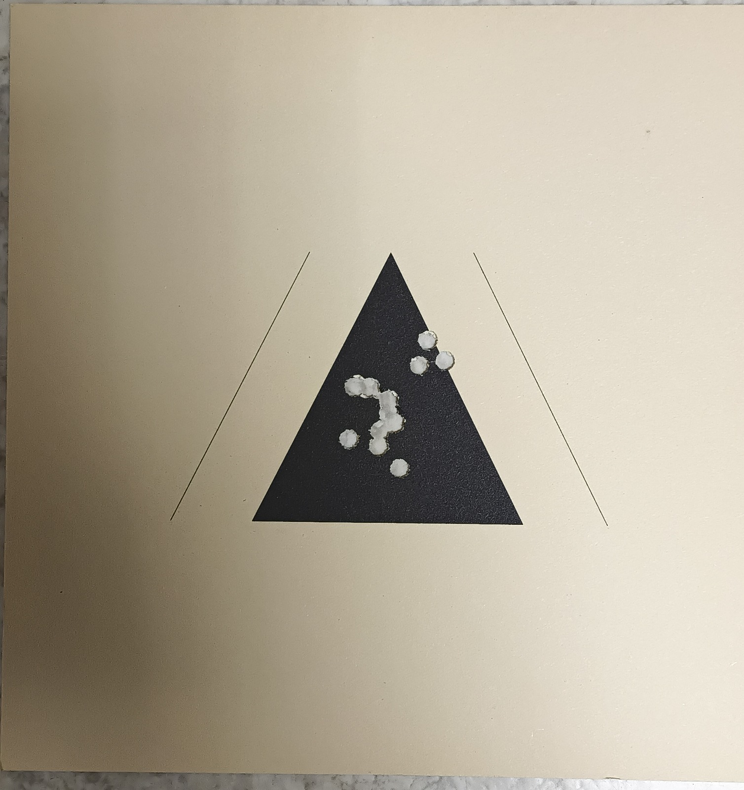Ich habe jeweils 40 Schuss auf die Scheiben abgegeben und diese in der Reihenfolge wie auf dem Bild zu sehen. Gestartet mit dem Dreieck