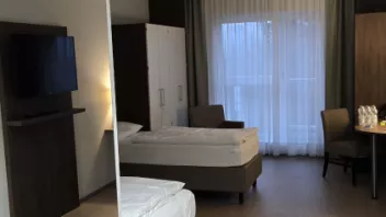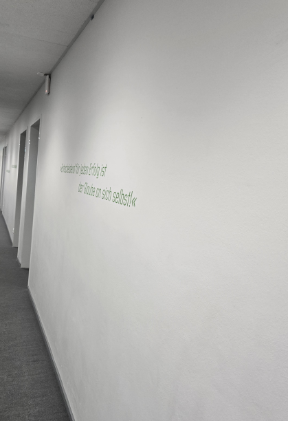 Direkt nach dem Wettkampf habe ich mich ins Auto gesetzt und bin nach Wiesbaden gefahren. Nach etwa vier Stunden Autofahrt kam ich gegen 16:20 Uhr an und habe im Sporthotel des DSB eingecheckt. Das Hotel ist wirklich großartig, eine moderne Anlage mit viel Charme. Besonders interessant sind die Flure: Überall hängen Motivationssprüche an den Wänden, die uns immer wieder daran erinnern sollen, wo wir uns befinden, nämlich in einem Umfeld, das ganz auf Hochleistung und sportlichen Erfolg ausgerichtet ist.
