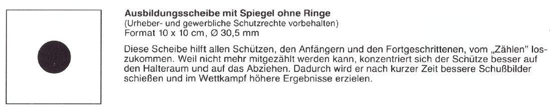 Die Scheibe ohne Ringe zur Schussbildkontrolle ohne dann "zwanghaft" Ringe zu zählen.