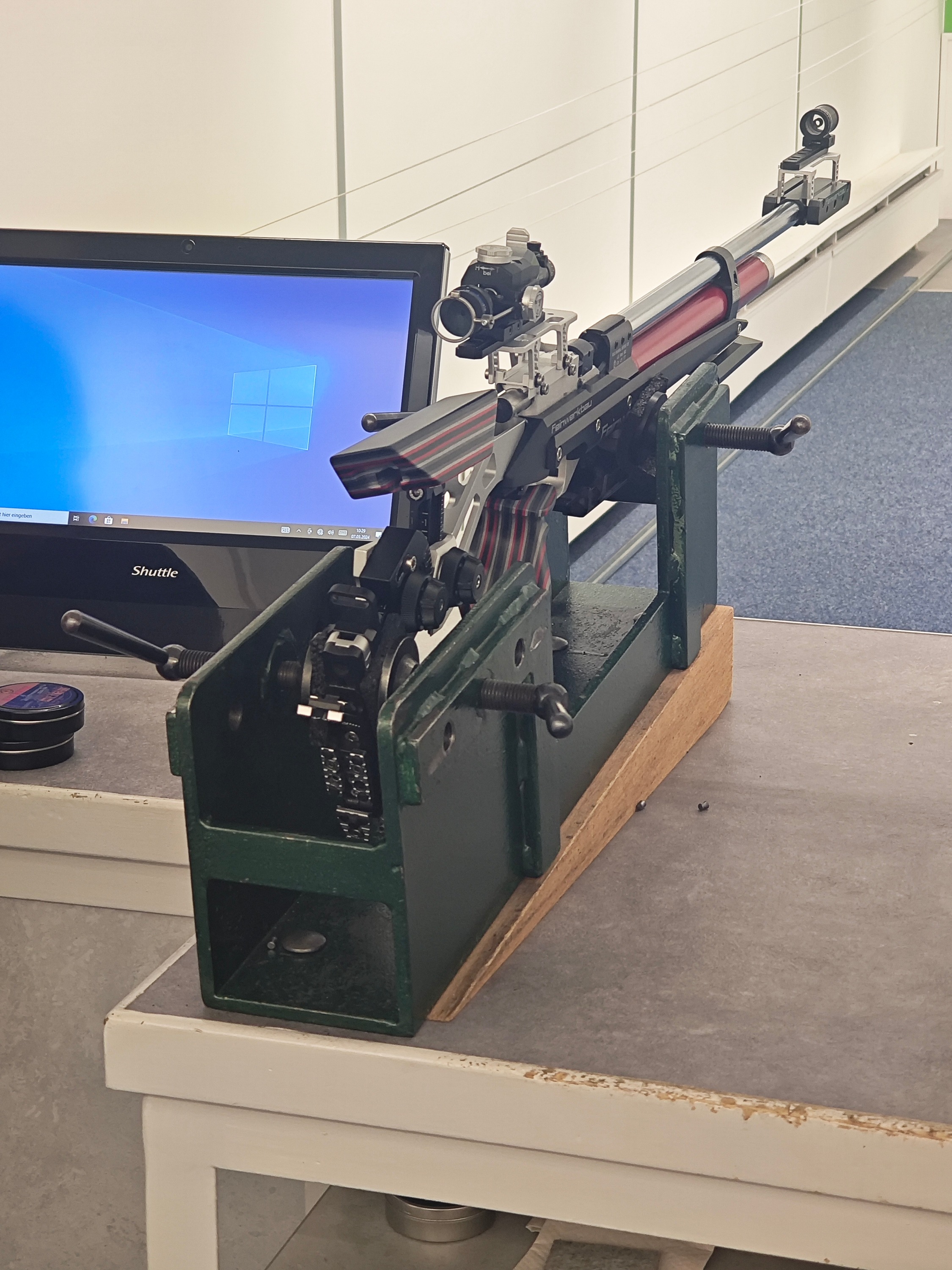 • Gerd59 wo ich bedenken hätte... bei dem Gewehrgewicht... und der schmalen Auflagenfläche durch Runde- oder Halbrunde Auflage... in kombination mit dem Weichholz... mit der Zeit Dellenbildung.. da du ja versucht bist.. das Gewehr immer an der gleichen Stelle der Auflagenschiene zu positionieren...