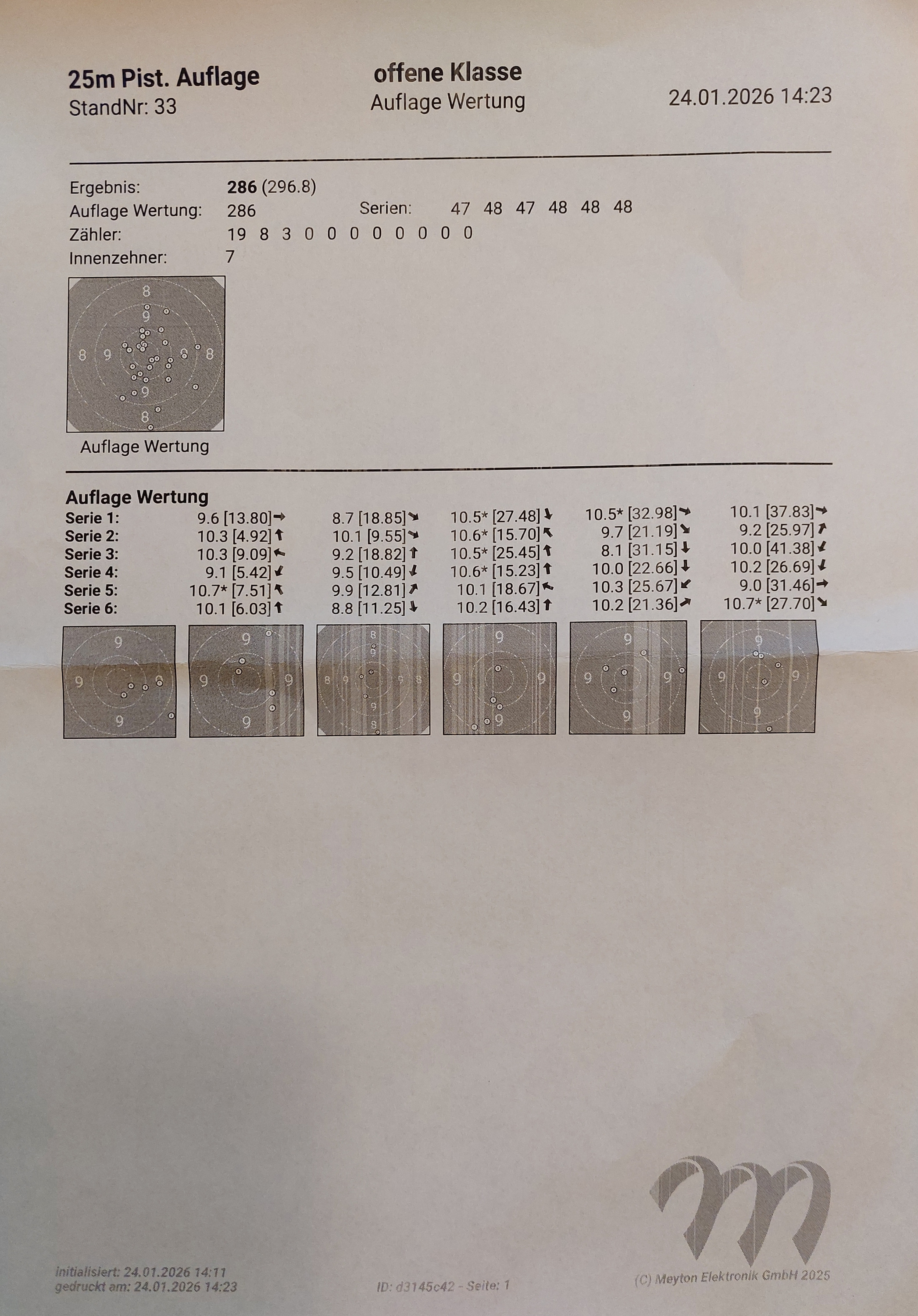 24. Januar 2026 um 18:03 #23 Koopi070Ergebnis 2.42 Sport Pistole Auflage für Januar 2026Ergebnis: 286