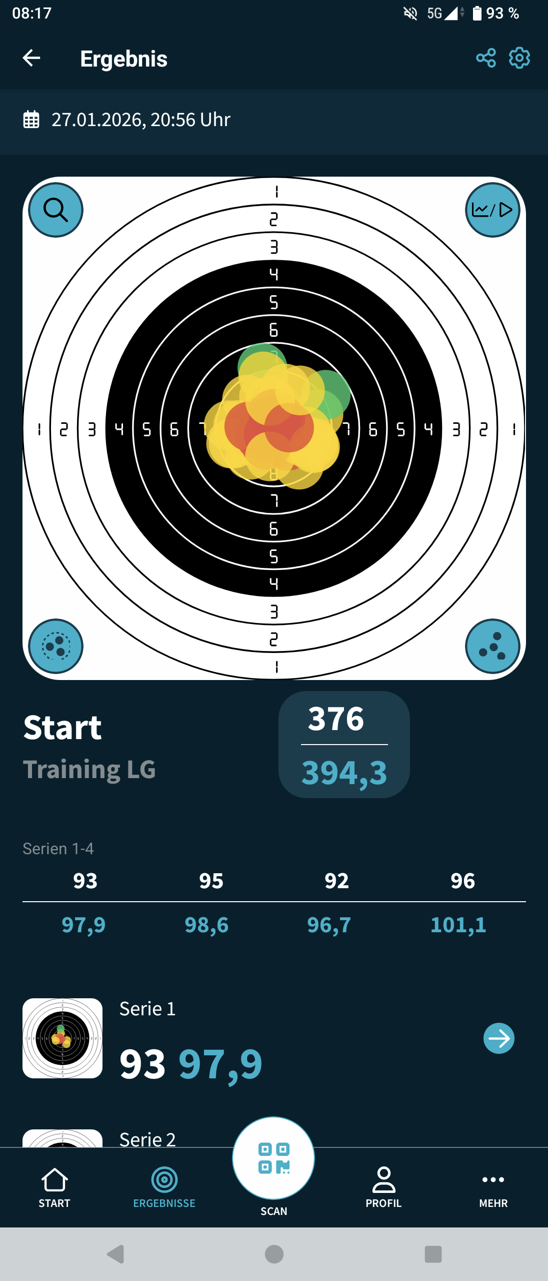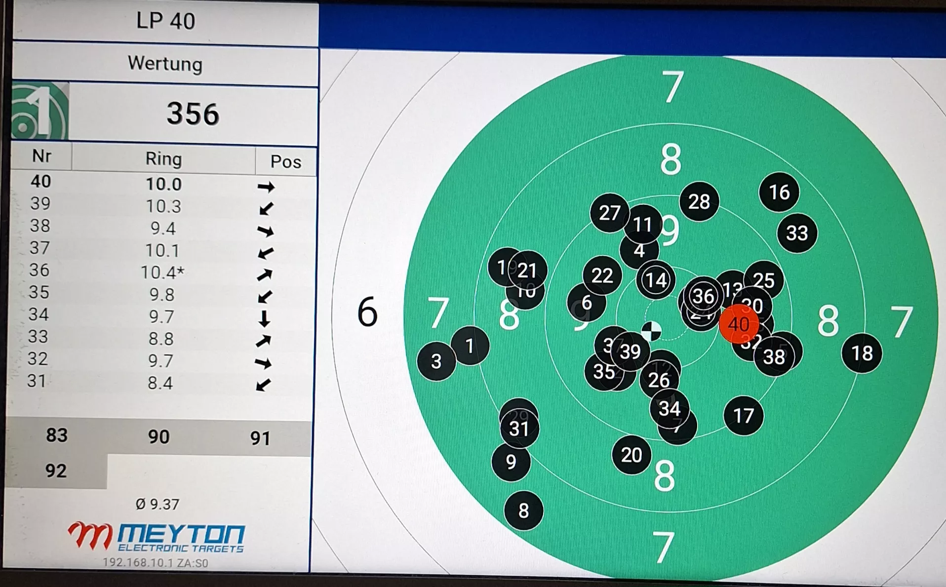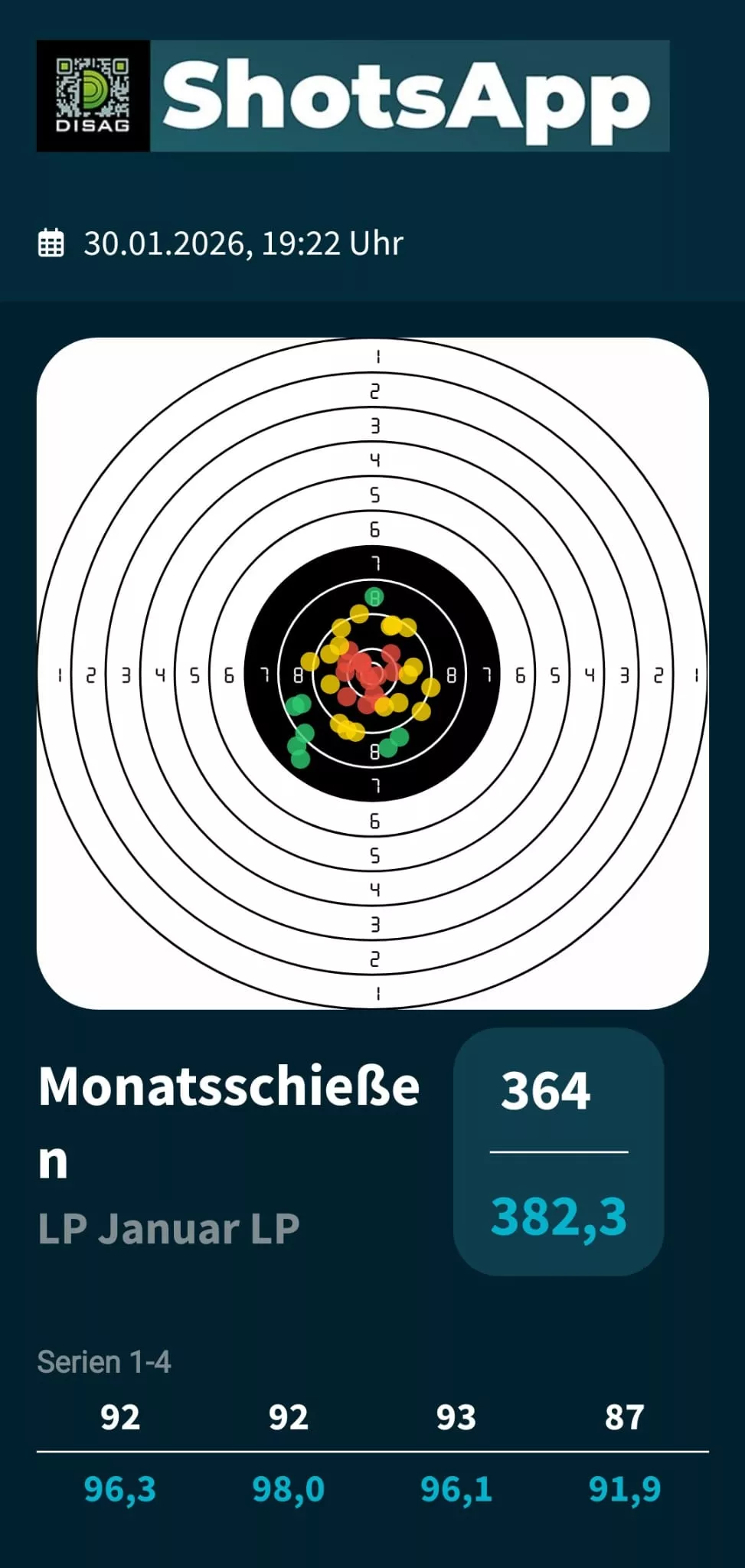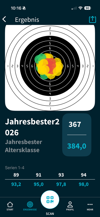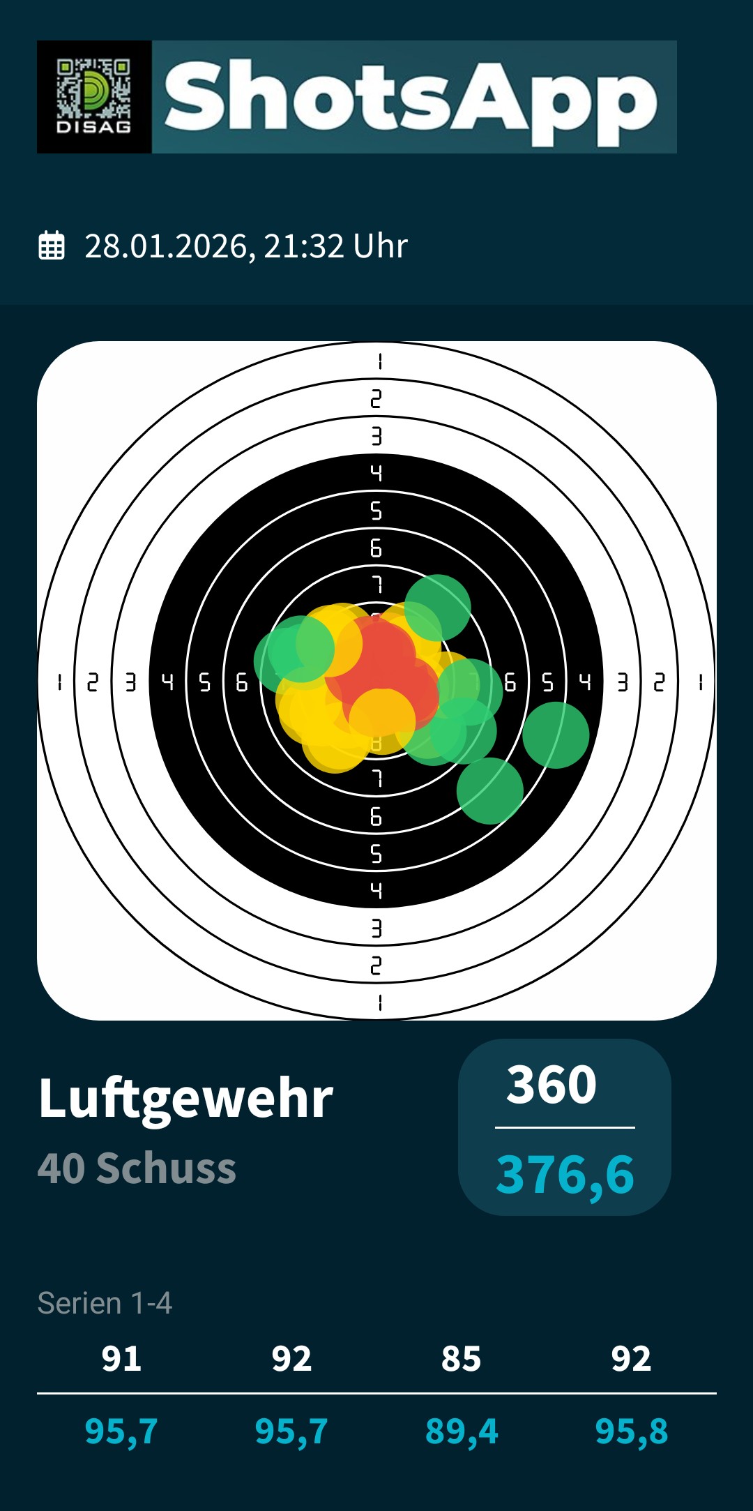 Ich Reihe mich mit 376 Ringe in der Diszplin Luftgewehr (DSB 1.10, 40 Schuss, 10 Schuss Serien, Ringwertung) mit ein.