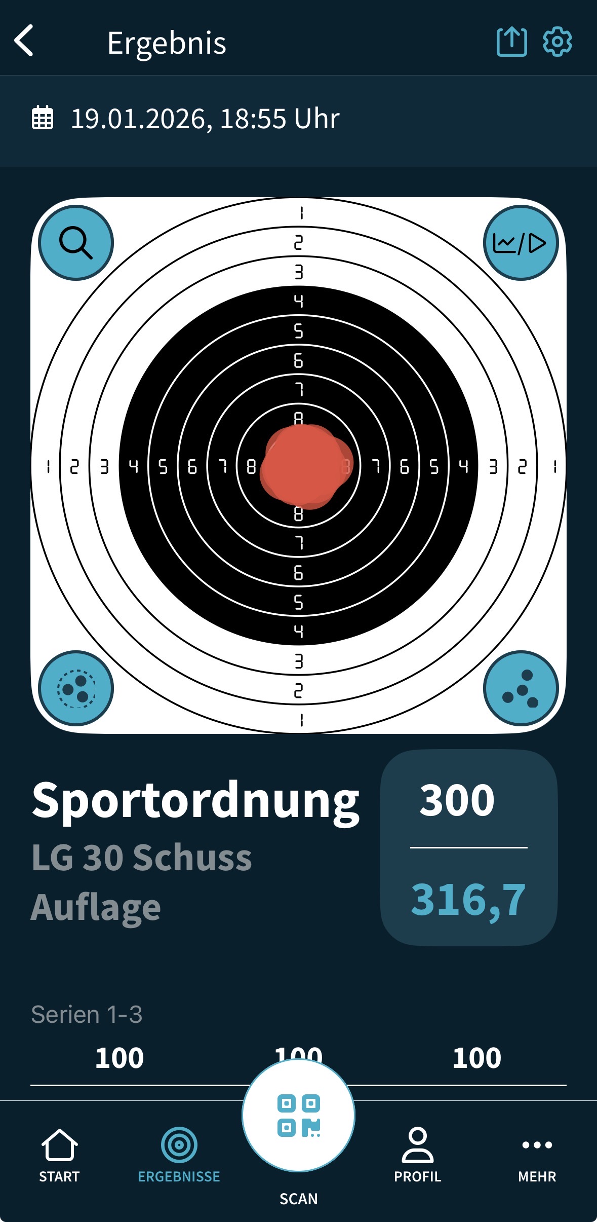 hier mein Ergebnis für Sportpistole-Auflage: