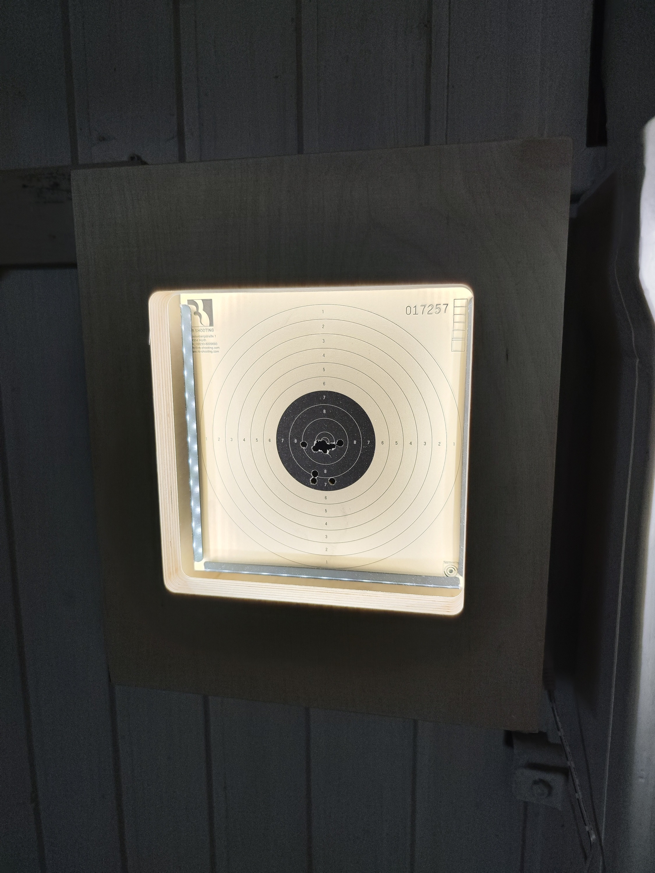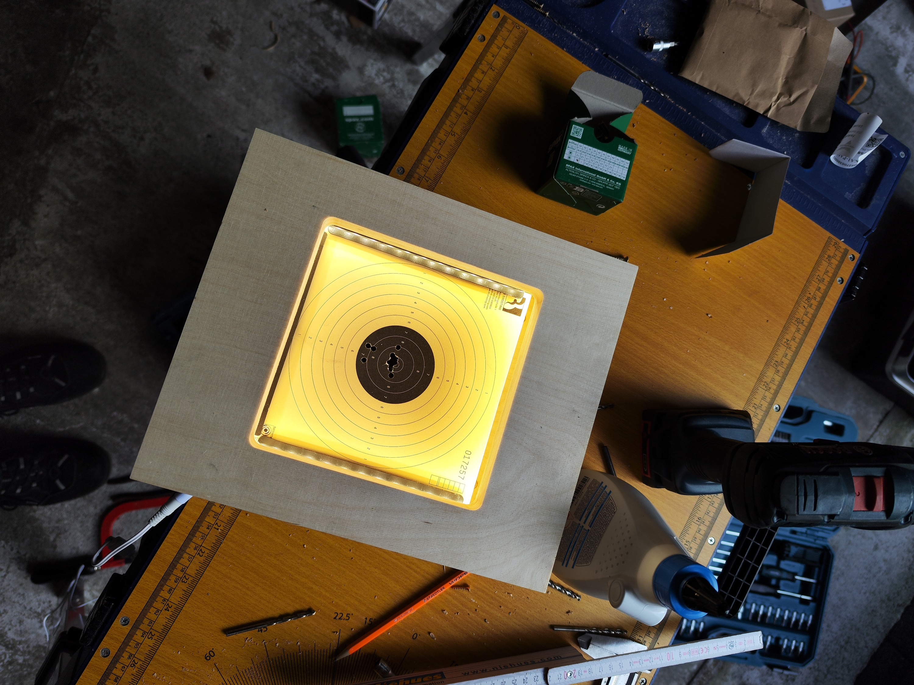 Mir ging es darum, die Scheibe beleuchtet zu haben, um Übungsbedingungen wie auf dem Schießstand zu haben.