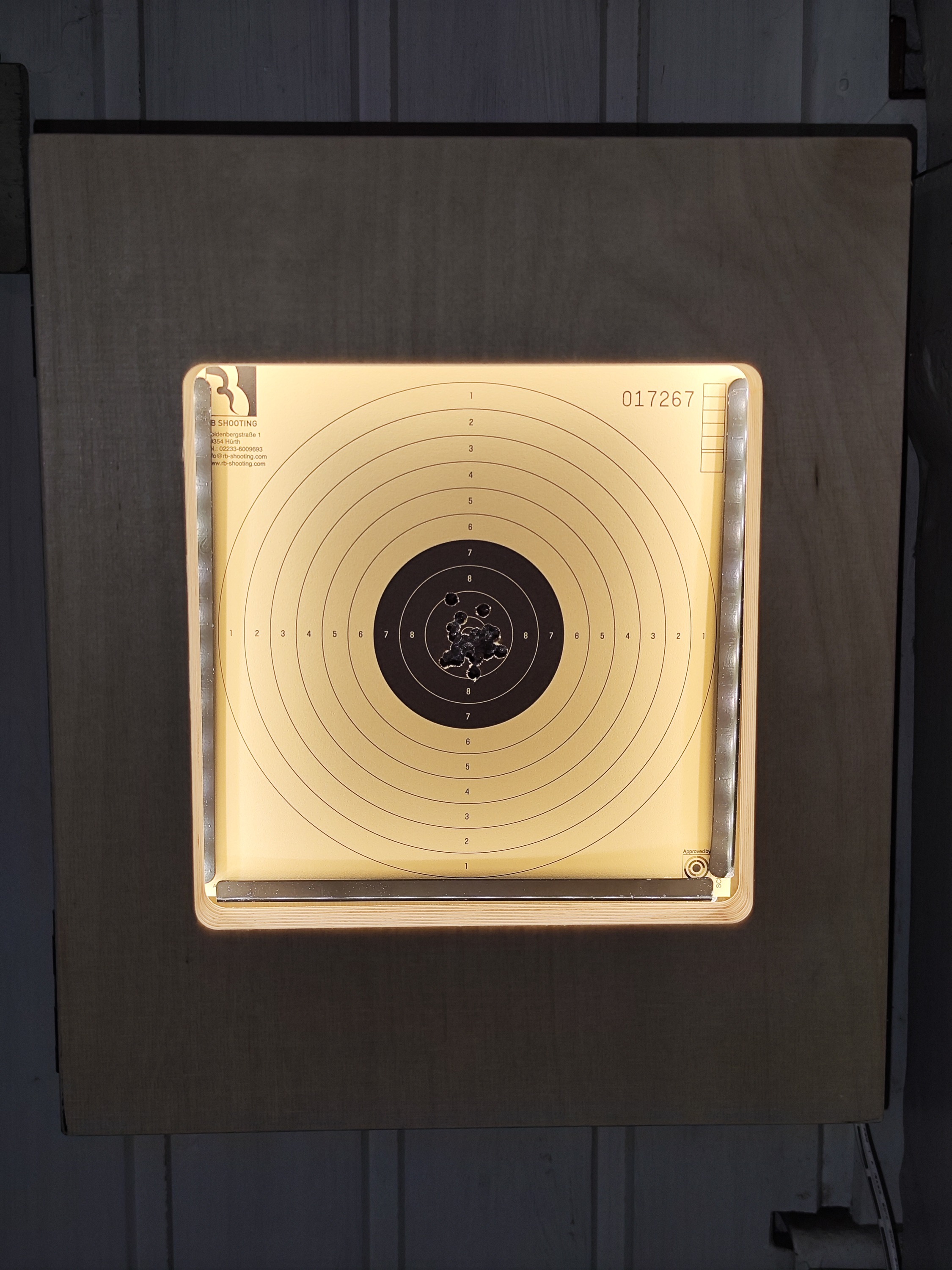 Mir ging es darum, die Scheibe beleuchtet zu haben, um Übungsbedingungen wie auf dem Schießstand zu haben.
