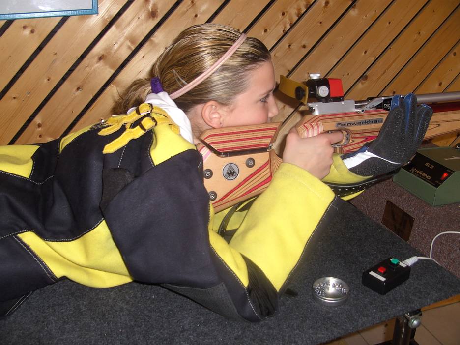 Die Seitenrichtung sollte auf jeden fall stimmen (Abstand weiß/schwarz) und Riemen und Armstellung des linken armes so einstellen, dass im ausgeatmeten Zustand das Gewehr genau auf der zehn steht. Zur Seitenrichtung: Den rechten Arm immer gleich ablegen; Warum??? Geht einfach mal in den Anschlag, dass ihr sauber auf der Scheibe seit. Dann lasst von einer zweiten Person den rechten Arm mehrmals nur um 1 cm versetzten (aussen/innen) und beobachtet mal euer Gewehr. mit diesem Zentimeter habt ihr einen anderen Anschlag oder eine 9 - 7 je nach leistungsstand. Wenn ihr das gemacht habt, werdet ihr immer darauf achten. Ebenfalls solltet ihr auf die Riemenspannung achten. Beim ersten Einrichten ohne Riemen einfach mal die "Höhe" suchen. Ihr liegt wesentlich unverkrampfter und dann einfach den Handstopp nach hinten und den Riemen einsetzen. nun noch leichte Spannung und zusätzlich noch 1 - 2 Löcher enger -passt-