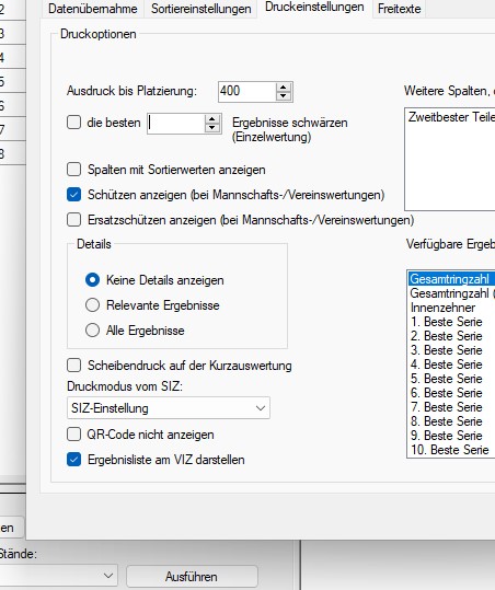 Bild 1 zeigt die Einstellungen der Ergebnisliste; Bild 2 die Druckvorschau; Bild 3 ist die Darstellung bei VIZ