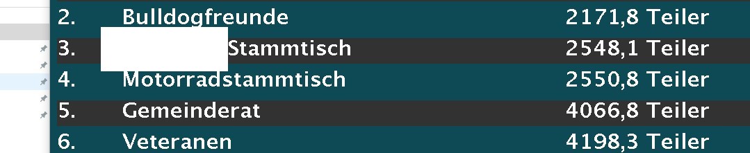 Bei Ergebnislisten kann ich wunderbar nach Vereinen gruppieren. Die VIZ Darstellung zeigt mir allerdings nur pro Verein eine Zeile mit einer unbrauchbaren Teilersumme.