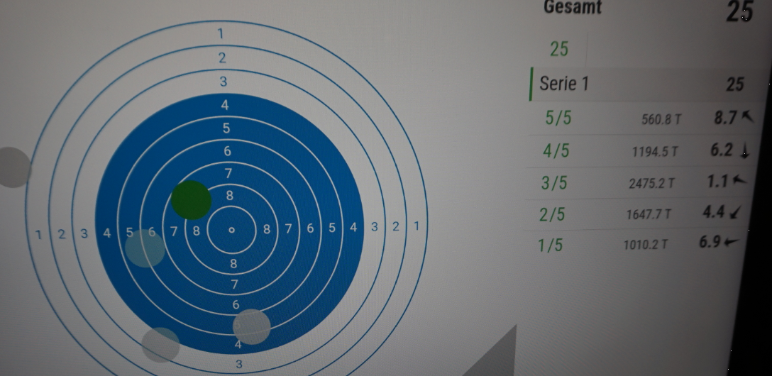 Dabei wird bei der Darstellung des Schussbildes nur noch eine Standardgröße angezeigt (ungefähr die Größe der 8er Rings), was dazu führt, dass einige Schüsse nicht dargestellt, bzw. über/unter die Ergebnisauflistung gelegt werden.