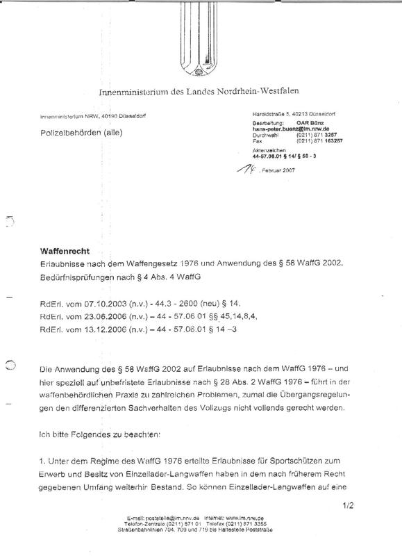 Der aktuelle Entwurf der Allgemeinen Verwaltungsvorschrift ist in der Tat in vielem recht positiv gehalten. Da er immer wieder verschoben wurde, ist es verständlich, dass manche, durchs Warten enttäuscht, nicht mehr an die Umsetzung glauben mögen. Warten wir's ab. :) Die Ermächtigung zu ihrem Erlass - nicht mehr durch das BMI, sondern durch "die Bundesrgierung" als Kollegialorgan - ergibt sich inzwischen unmittelbar aus Art. 84 Abs. 2 GG, und nicht mehr aus dem WaffG.