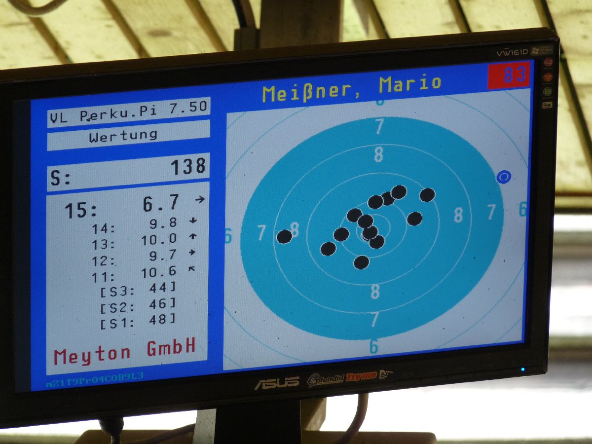 Mein Freund hatte 3 Starts, wobei das Ergebnis mit der Perkussionspistole mit 138 Ringen das Beste war und für Platz 15 gereicht hat.