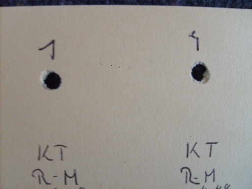 Bei den Trefferbilder die ich vom Munitionstest bekomme weisen die Besten einen Streukreis kleiner als 5 mm aus, das heist, diese Munition schießt Loch in Loch. Bei schlechterer Munition ist der Streukreis auch mal 10 mm und größer. Meist gibt es mehrere Sorten die gut schießen. Je nach Preis suche ich mir von den bestschießensten eine Sorte aus und kaufe mir einen Vorrat, der ca. 2 Jahre reicht.