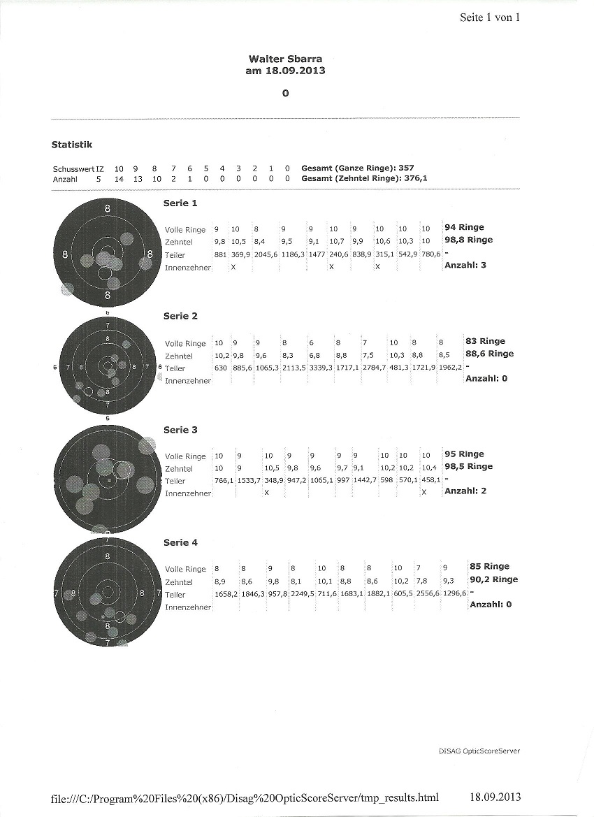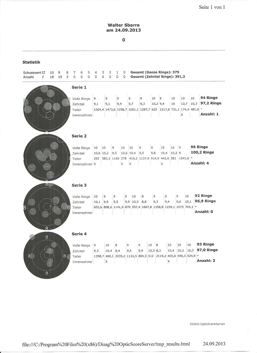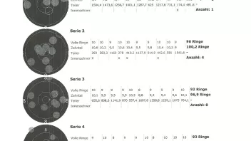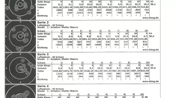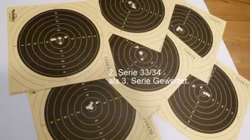 Gewehreinstellung bei den letzten 60 Schüssen: Adlerauge o,5 / Ringkorn 6,1 / Visierlinie 91,5 cm