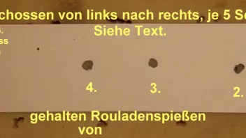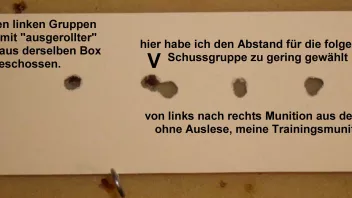 - Die Art der Visierung bzw. ein exaktes Ausrichten/Weiterschieben des Scheibenstreifens ist für die Bewertung des Trefferbildes nicht relevant. Entscheidend für den Vergleich ist nicht die absolute Lage der Treffer, sondern die Abweichung der Treffer voneinander.