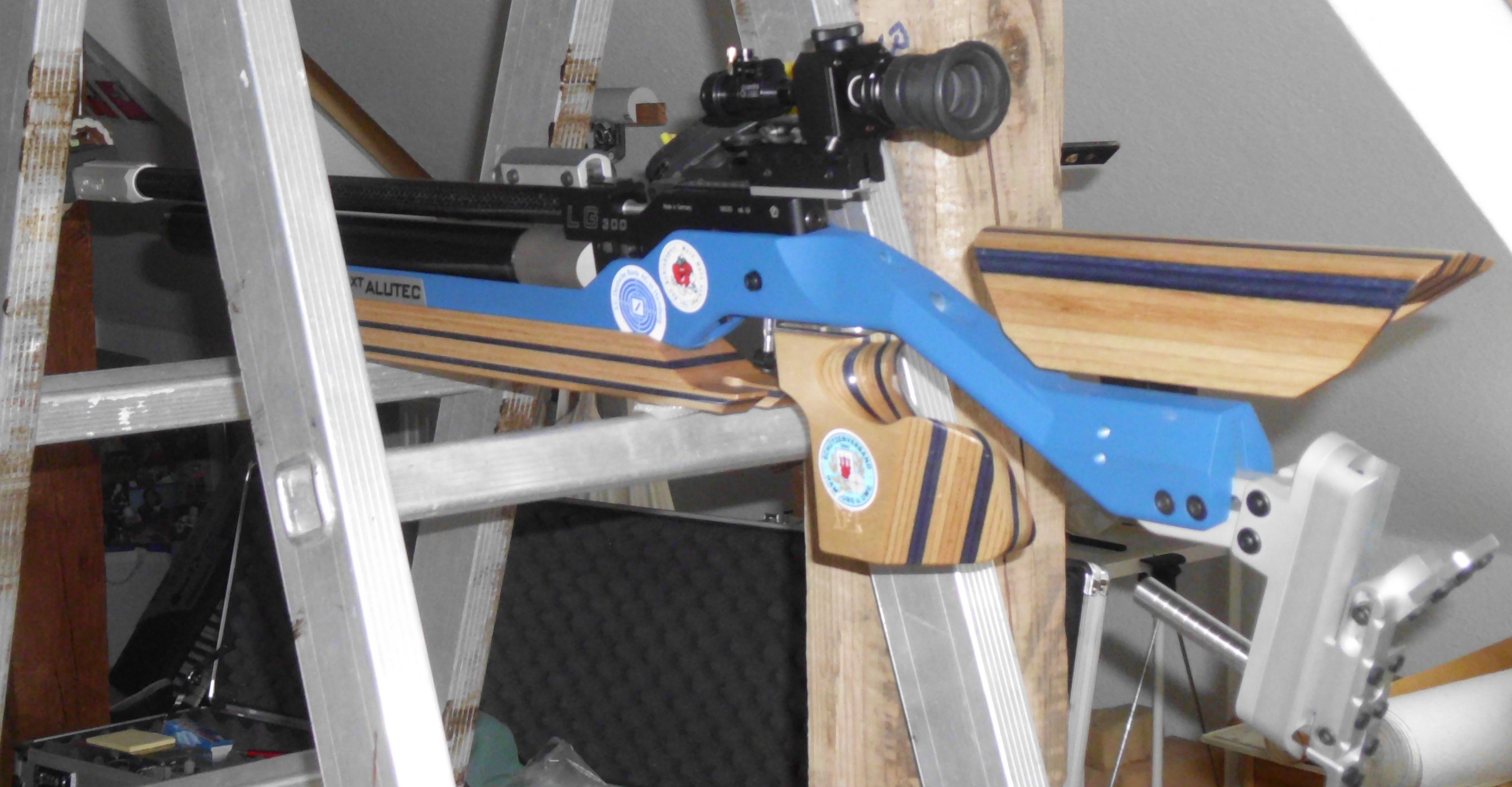mein KK-Gewehr mit einem Zielfernrohr aus. Mit dem Zielfernrohr lässt sich das Ziel – zumindest für mich – leichter und eindeutiger verkantungsfrei anrichten.