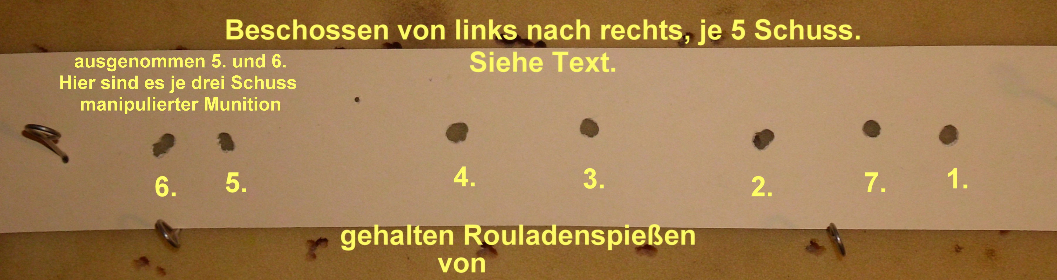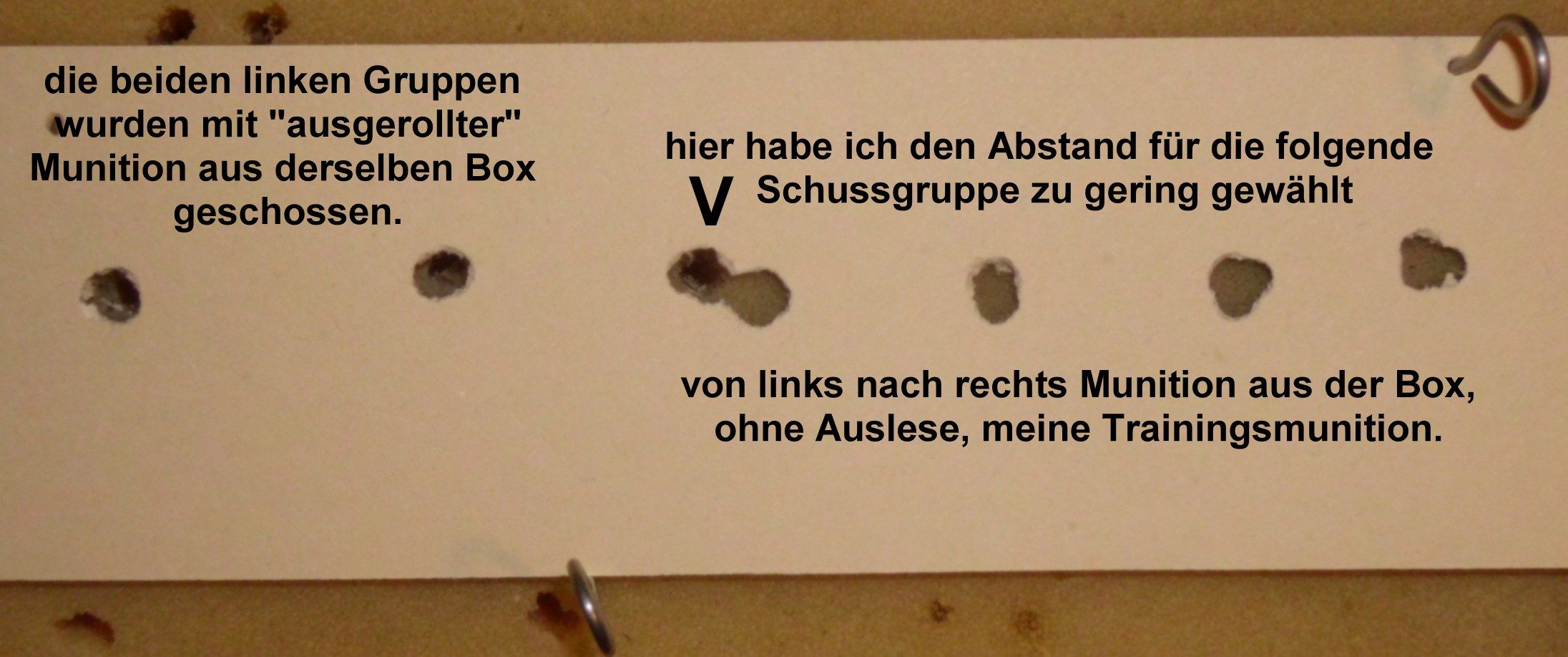 Ich musste die Bilder immer wieder verkleinern um sie hochladen zu können)Die Schussgruppen bestehen alle aus 5 Schuss/10m/LG,ausgenommen die beiden manipulierten Gruppen.