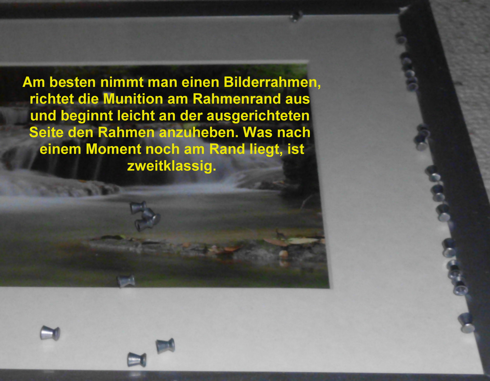 Ich reihe die Munition am Bilderrand, am Rahmen mit kleinen