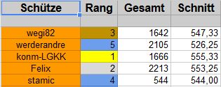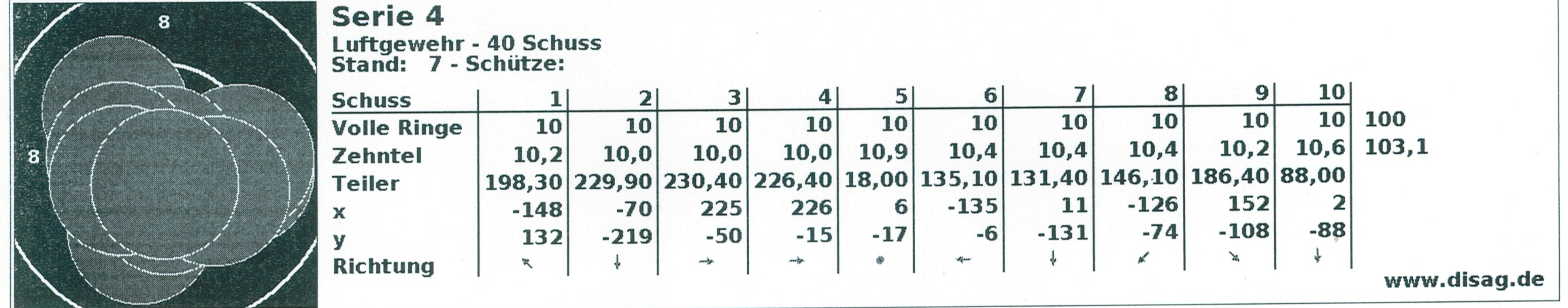 Habe leider zuwenig 10er geschossen (immer knapp um die 10 herum). Hier ist also Luft nach oben frei!