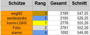 Seit März habe ich mich jetzt im jeden Monat gesteigert, was auch mein Ziel ist. In den nächsten Wochen werde ich mich auf LG konzentrieren und danach eine kleine Schießpause einlegen, also daher kann es sein dass ich im Juli kein Ergebnis melden werde!