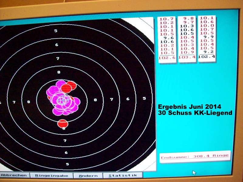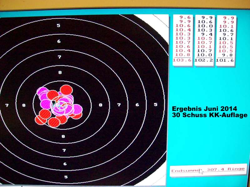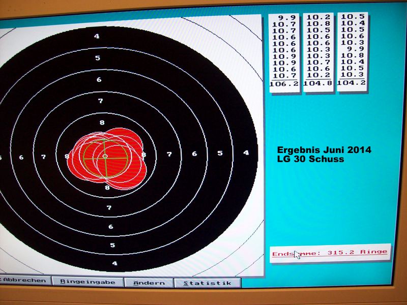 Schussbild wird immer größer. LM nur 294 Ringe! Mun-Test am 26.06.2014
